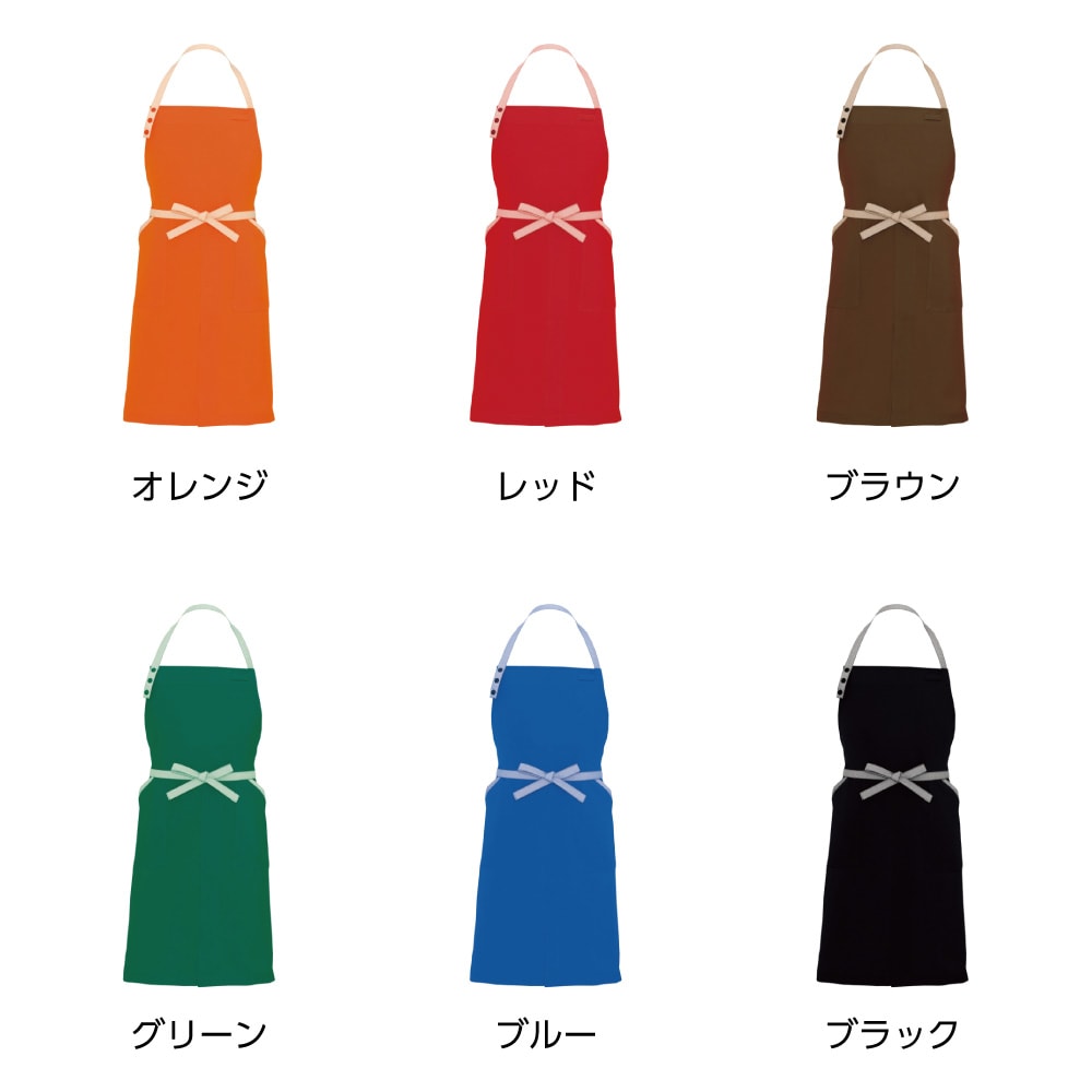 【JIS-T8118適合】帯電防止機能付き。首掛け仕様。首紐はドットボタンで調節可能(3段階)。左胸名札ループ付き。左右腰ポケット付き。右腰ポケット内側にペン差しポケット付き。足捌きをラクにするフロントスリット入り。ポリエステル100%のタッサー生地で耐久性に優れ、シワにもなりにくくイージーケア。フリーサイズで男女兼用。カラーバリエーションはオレンジ、レッド、ブラウン、グリーン、ブルー、ブラックの6色展開。同素材のミニタイプ(ショート丈)の展開あり。