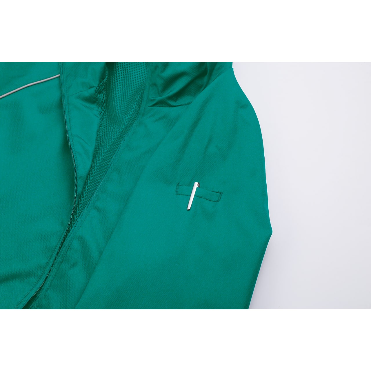| □背当メッシュ □反射パイピング □左袖ペン差し □袖マジックテープ |