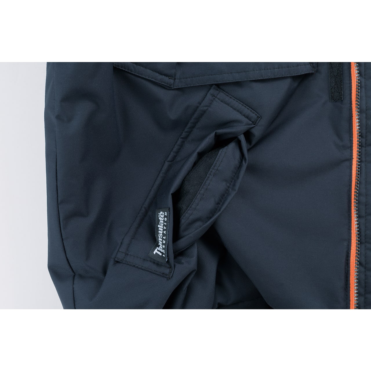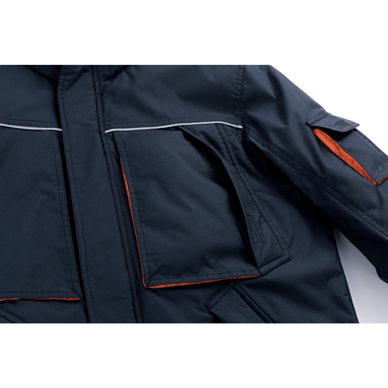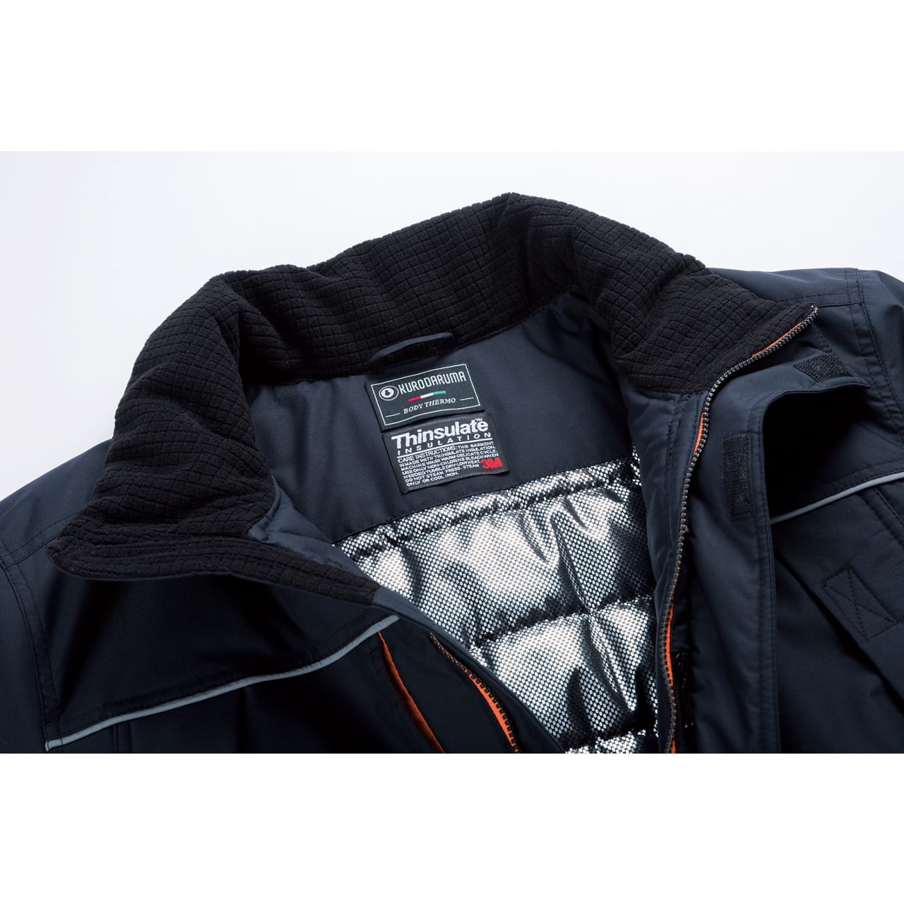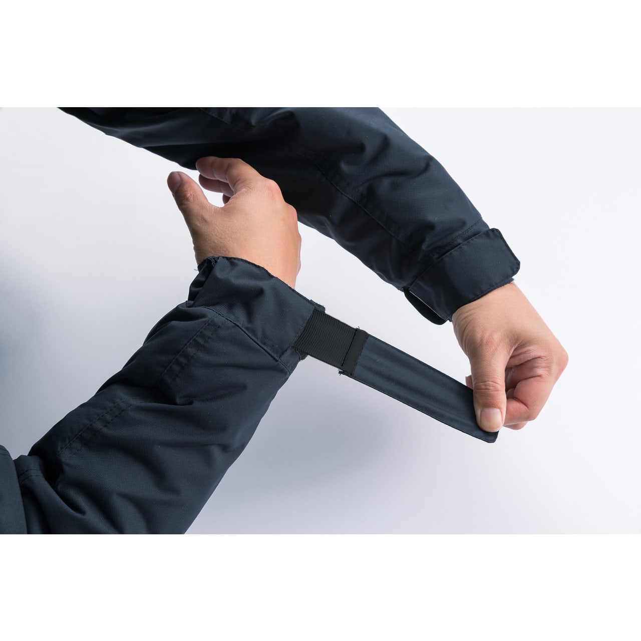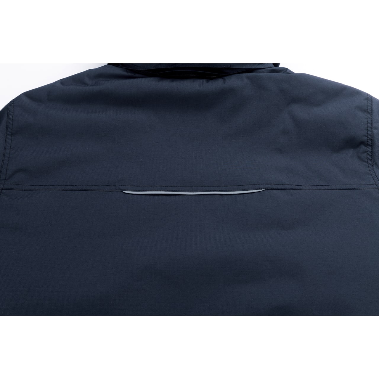 着用しているうちに、どうしても厚みが減少してしまいがちな中綿を、高機能中綿素材を使用することで改善させています。裏地にアルミプリントを施し、さらに保温性を高めているのも嬉しいポイント。耐水性にも優れており、急な雨にも対応します。反射テープがあしらわれているため、夜間の作業にもぴったり。袖にはジャージの内袖がついているので、冷たい風もシャットアウトします。