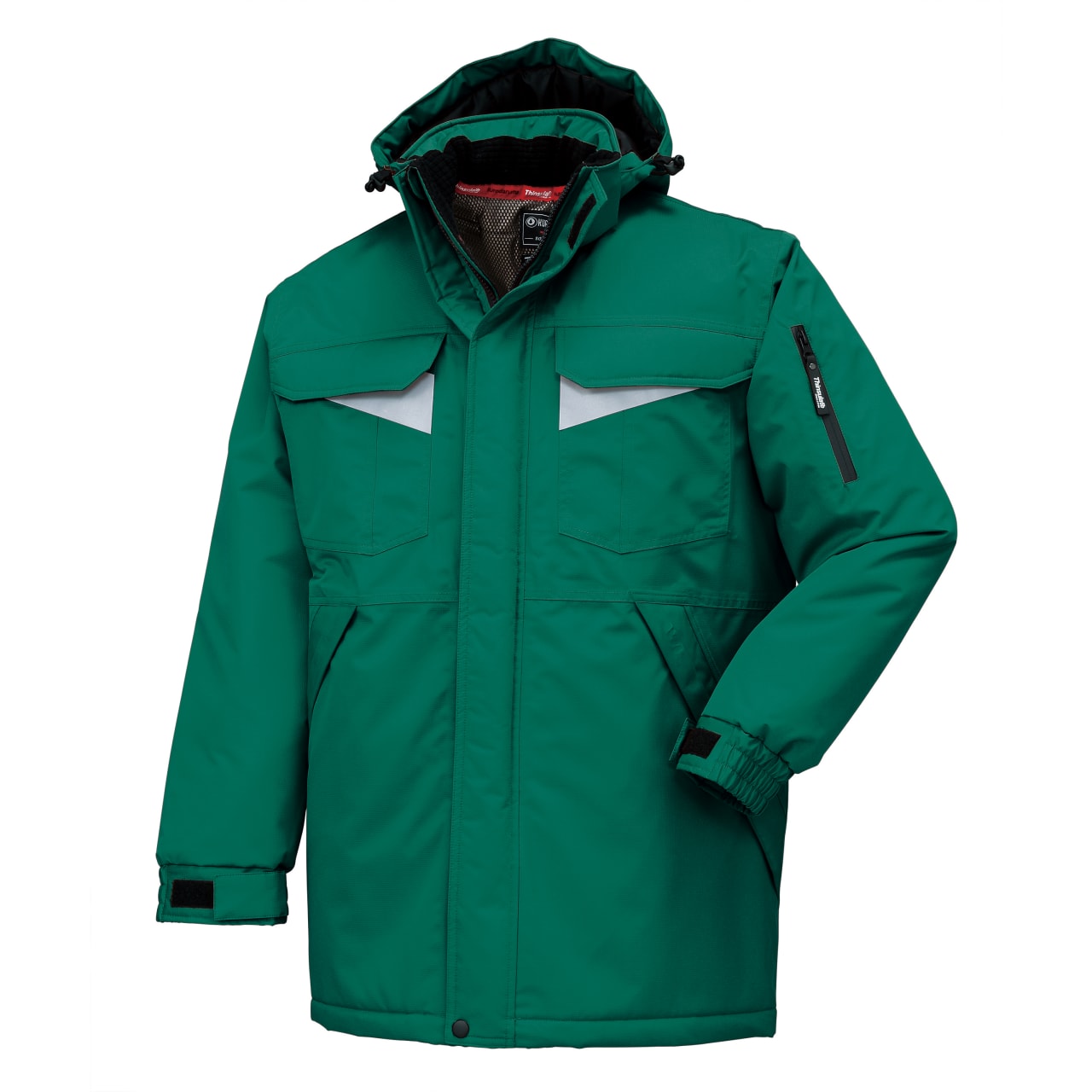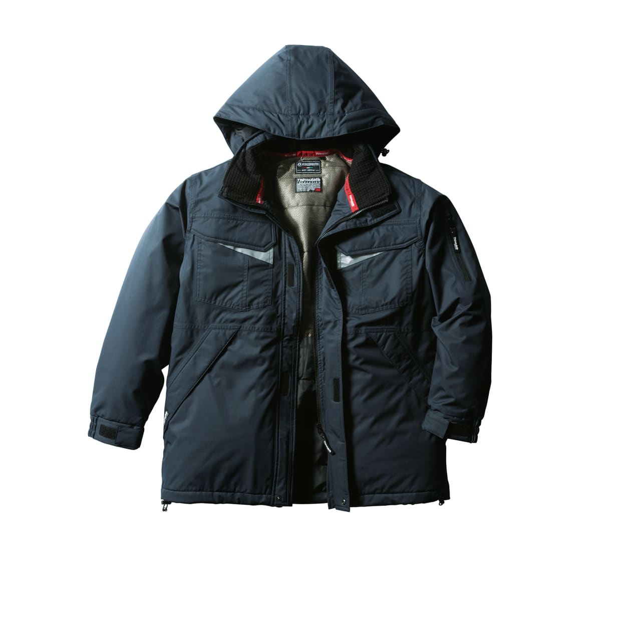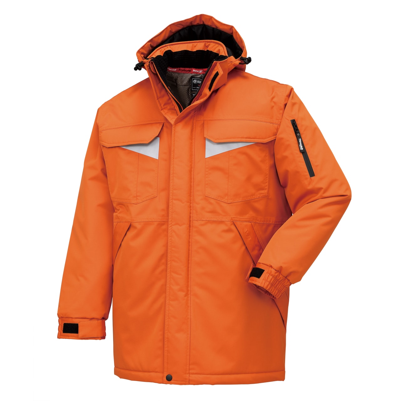 秋冬シーズンに活躍する、中綿が入ったあたたかな着心地の防寒コート。防水性に優れているため、急な雨や雪などの天候の変化にも対応可能です。フルジップ仕様のため、首元からの風の流入も防いでくれます。胸ポケットや背中の切り替え部分に反射素材を使っており、夜間の作業などにも活躍するのが魅力。着脱式フードや豊富なポケットなど、作業をサポートする機能が多く備わっているアイテムです。