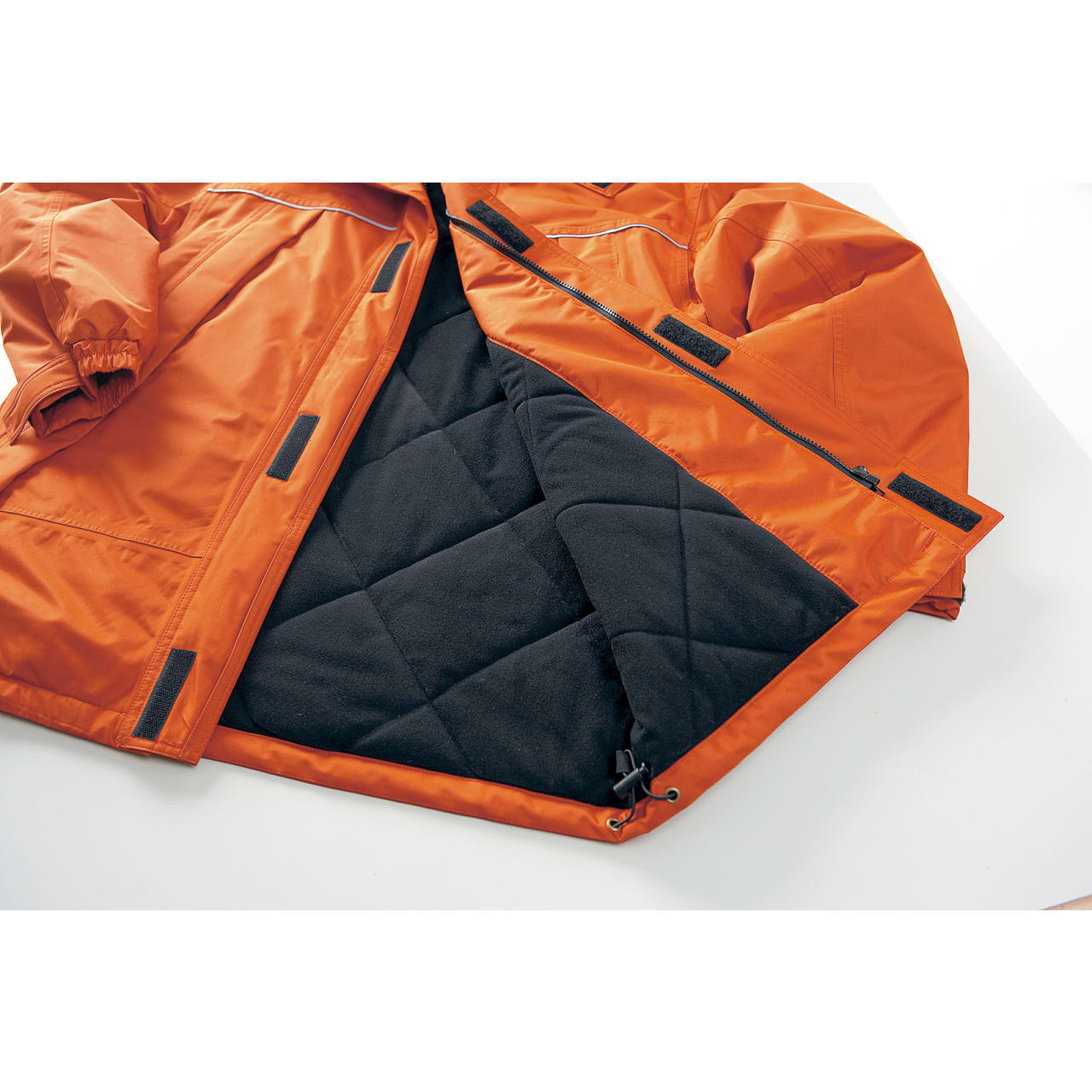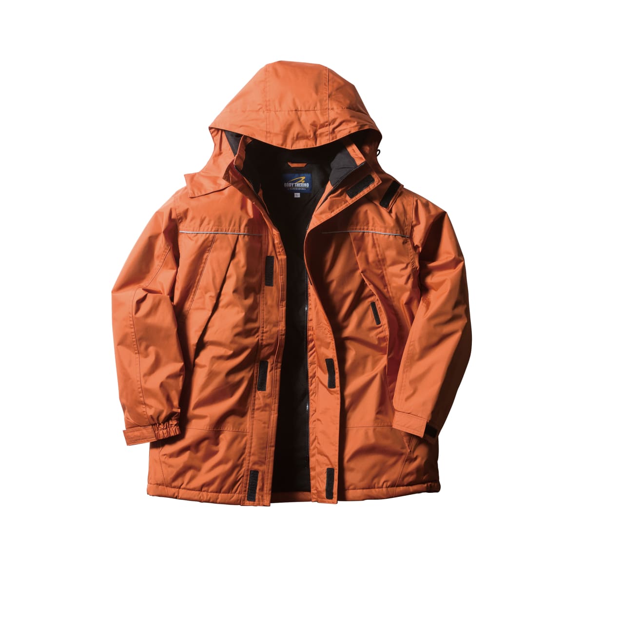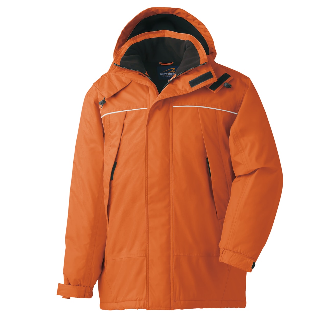防水性、保温性を高めた、冬の屋外作業をサポートしてくれるコートです。ツバ付きのフードで日差しをシャットアウト。前後に反射テープを配しているため、暗い場所や夜間の作業にも適した仕上がりになっています。フロントには斜めに配した大きめのポケットが備わっており、ちょっとした小物であれば手ぶらで持ち運ぶことが可能です。本格防寒の秋冬シーズンに活躍してくれるアイテム。