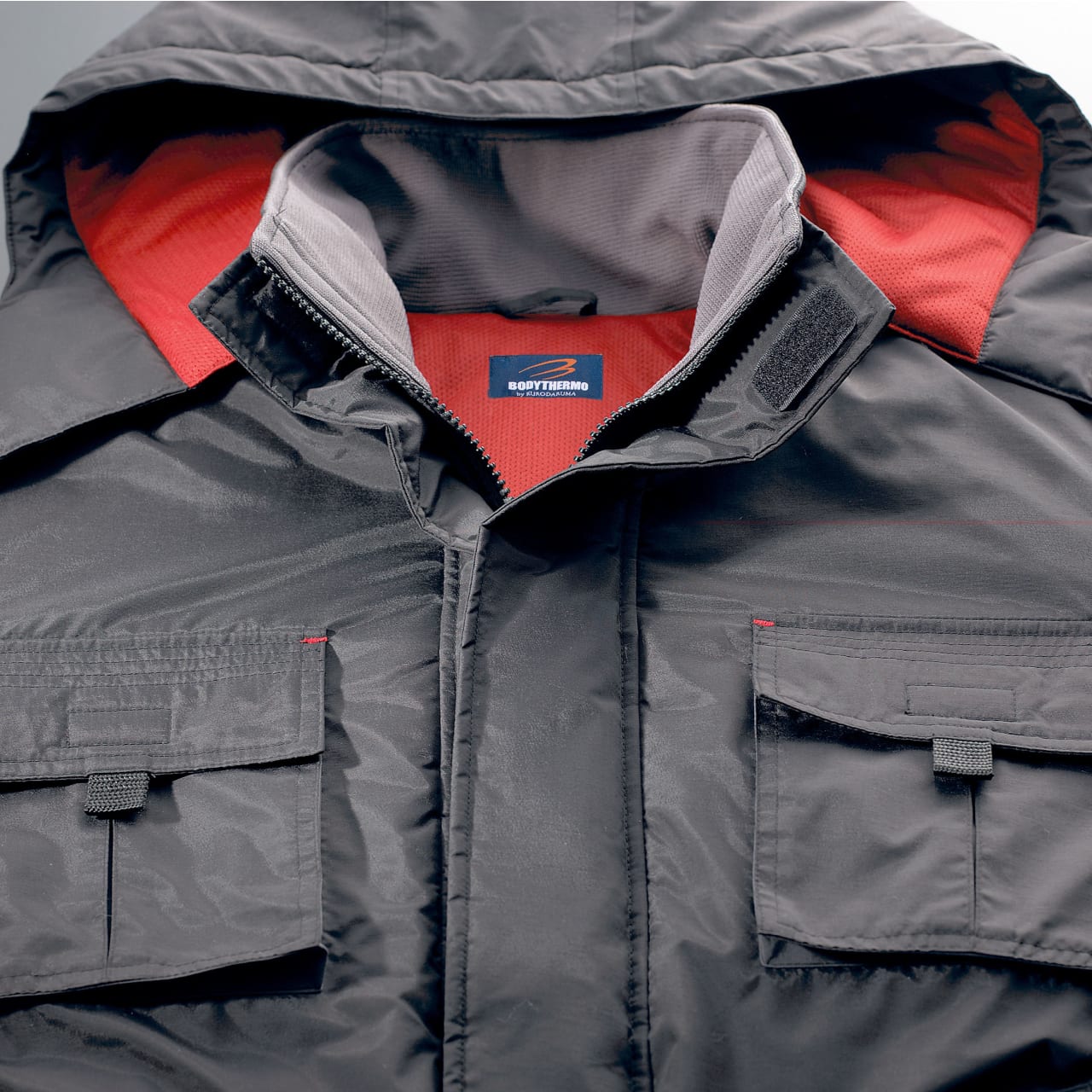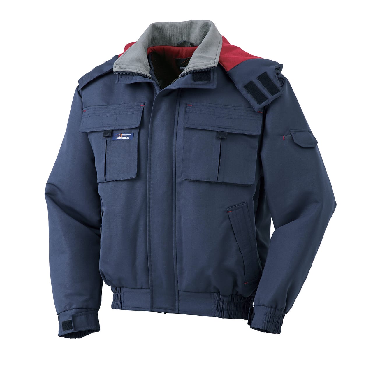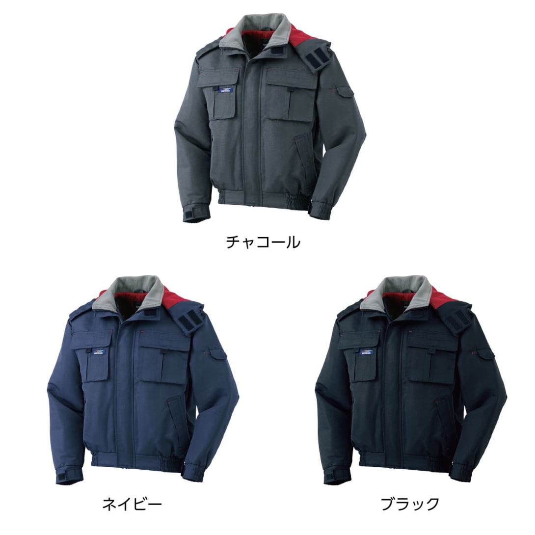 過酷な環境でも耐えられるだけの本格的な防寒・機能性を持ったジャンパーです。表・裏・中綿にはポリエステル100%が使用されており、表面の光沢が美しく上品です。軽やかでありながらも丈夫でシワになりにくいので、お手入れ面でもメリット多し。特に表地は嵩高性のある糸タスランが使われているので、肌触りの良さも魅力です。裏地にはメッシュとタフタを使用。通気性を確保しながら暖かさをキープできる仕組みです。カラーはブラック、ネイビー、チャコールグレーの3色展開。サイズはM〜5Lと幅広く取り扱っています。