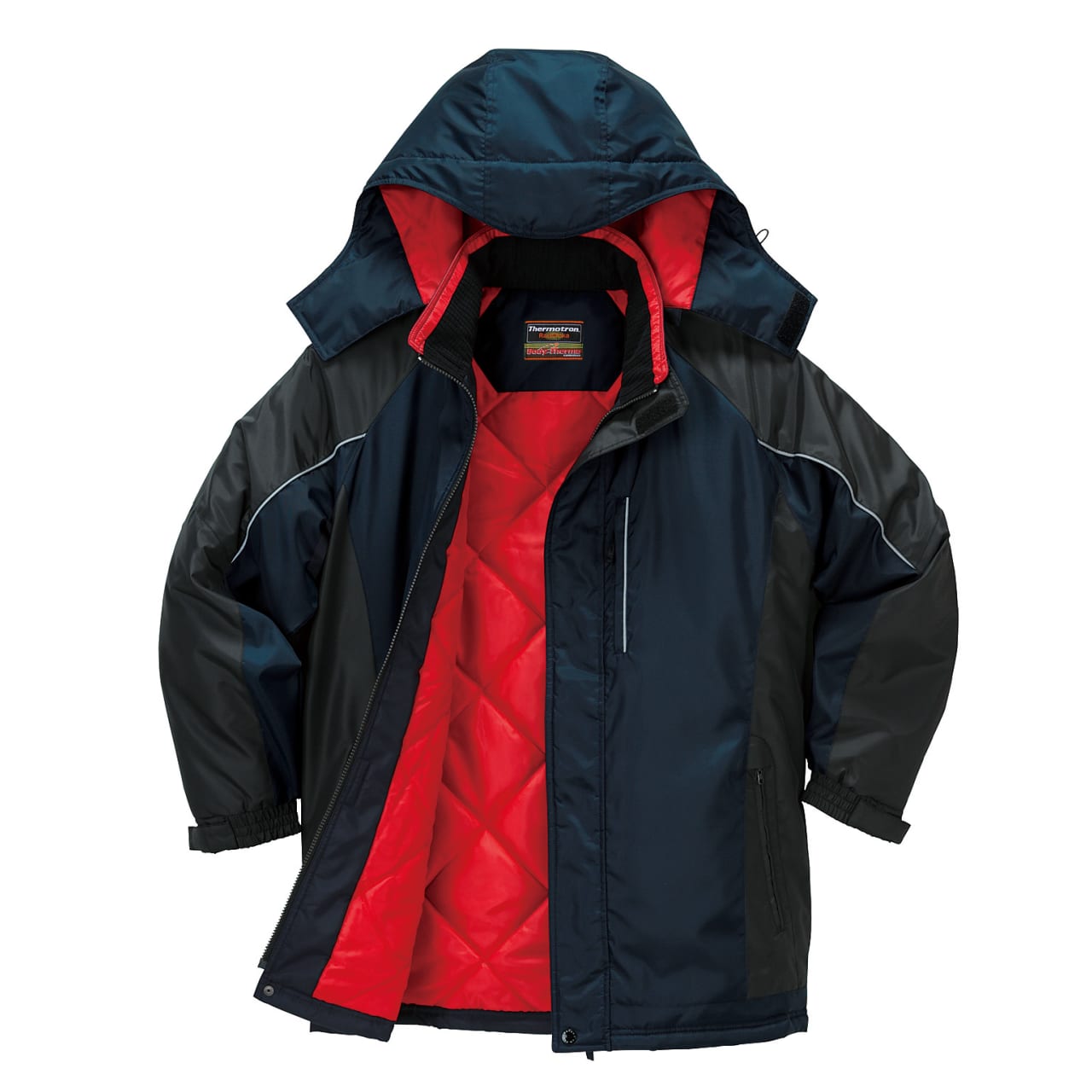 | □着脱式フード&ドローコード付 □前立ファスナー&マジックテープ |