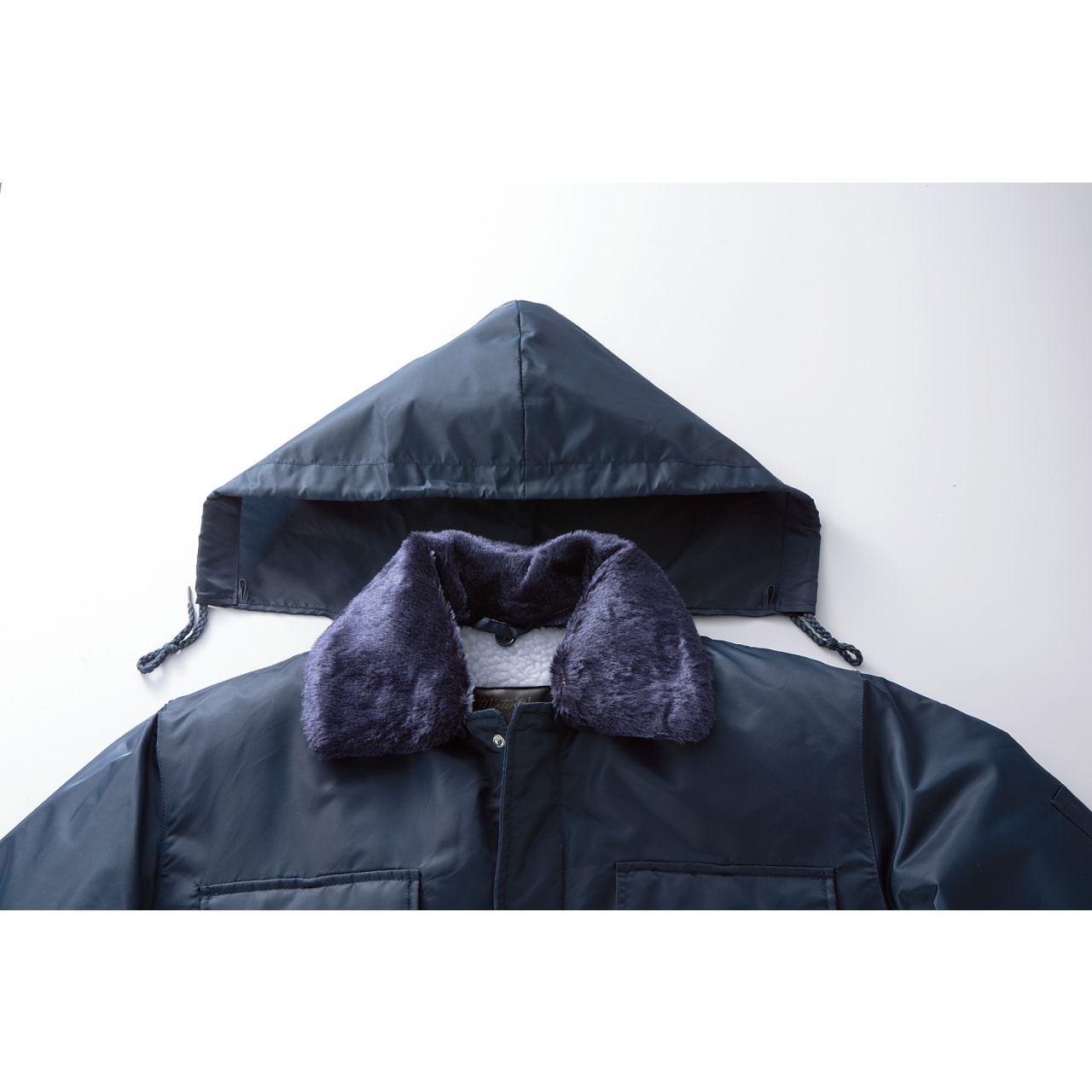 裏地にあしらったもこもこのボアがしっかり暖かさをキープする防寒コートです。さらに、着脱式の衿ボアと収納式のフードもあり、完全なる防寒が期待できます。中綿も入っているので、ポカポカに過ごせること間違いなし!表地には撥水効果のあるナイロンツイルを使用。多少の雨や水を弾いてくれるほか、風も通しません。左右の胸部分には フラップ付きのポケットが設置されており、 激しく動いても 物が落ちにくくなっています 。左袖と胸の部分には ペン差し もあるので、メモの際に役立つでしょう。カラーはネイビーのみ。サイズはM〜5Lと幅広く取り扱っています。