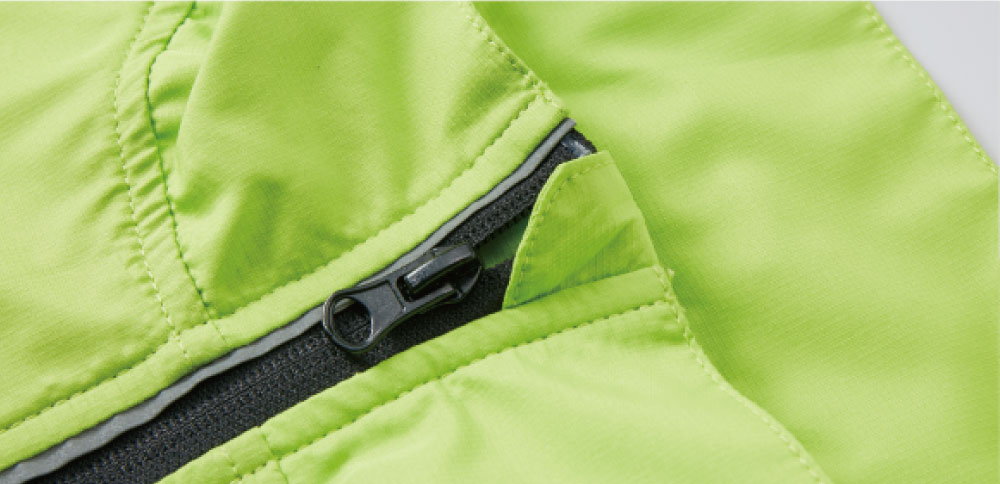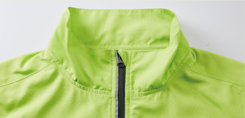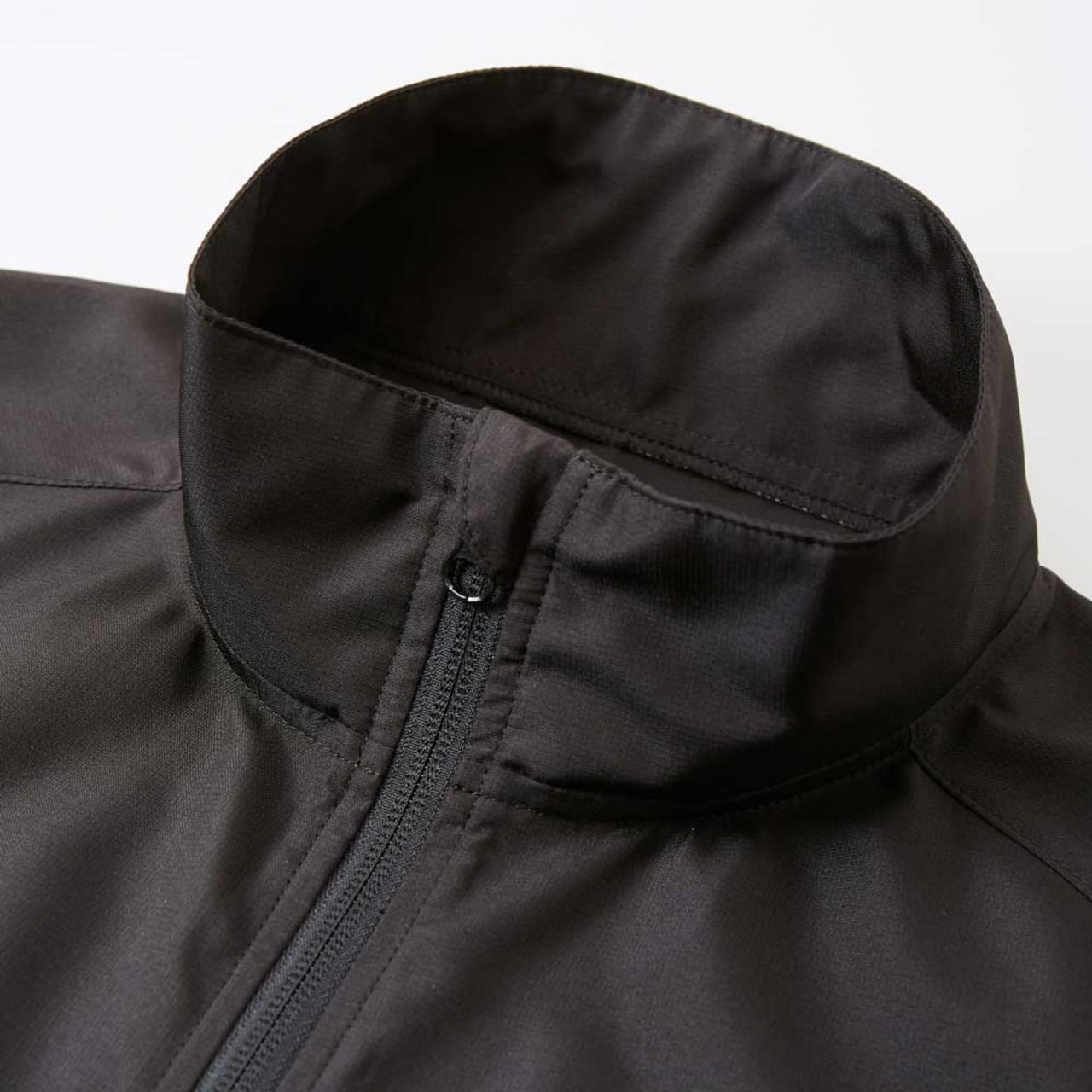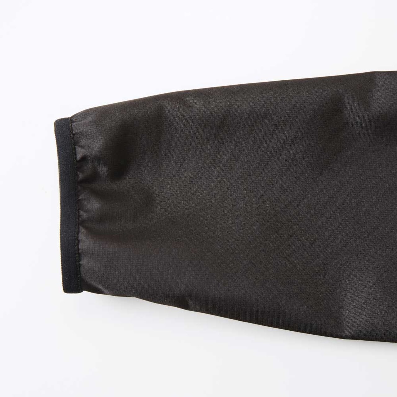 シンプルでありながら、生地の持つ撥水加工や防風性能をアシストするデザインが施されたウェアです。ファスナーは襟元までしまるフルジップアップタイプなので、首元からの風の流入をカット。冬場はネックウォーマーなどと組み合わせることで、より快適な着心地を実現します。また裾と袖口にはシャーリングが施されており、適度なフィット感をプラス。ここでも風や冷気の侵入を防ぎつつ、袖や裾がダブつかないことで抜群の作業性を生んでいます。繊細な配慮がスタッフの中でも好評なジャケットでした。