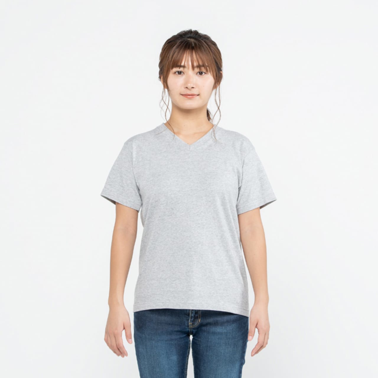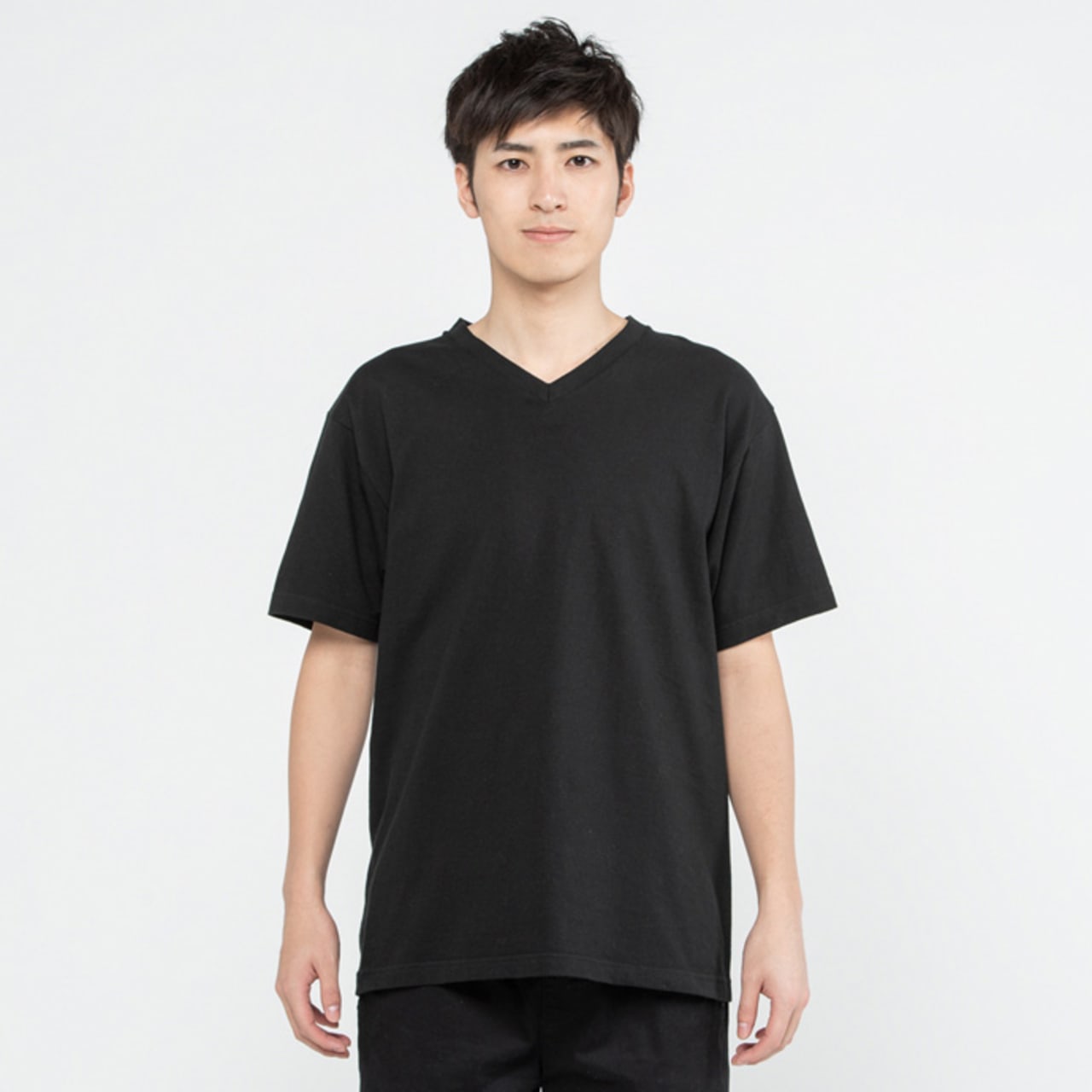 深すぎないVネックがインナーとしても1枚着としても使いやすい肉厚Tシャツ。