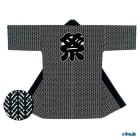 背紋に祭文字が入った本格的な祭りようはっぴです。細かな所にこだわりがあり裏地には肩あてがしっかりとついておりお神輿を担いでも負担が少なくなるように設計をされております。背縫いもしっかりと入っております。背縫いは本来サイズを調整するものでしたが最近では背縫い自体がデザインの一つとして捉えられております。