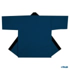 濃紺色の無地はっぴです。紺ではなく濃紺である事がポイントの色です。紺の与える印象としては革新的、豊かさ、専門性、信頼、知識等があります。制服などでも紺色は多くあるのは与える印象によるものだと想像ができます。はっぴでは濃紺色はかくれた人気色になっております。プリント入れるのであればホワイトプリントがお勧めです。