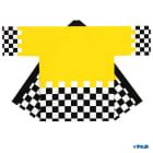 本体がイエローベースの市松柄はっぴです。通常ですと市松柄はホワイト色のみなのですがこちらのはっぴ はホワイト色とブラック色となっております。この配色シリーズで4色の展開をしておりますがどことなく奇抜な印象を受けます。イエローとブラックは本来相性はよいのですが市松柄にすると調和がとれにくくなっております。