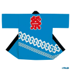よく見かける祭りはっぴのデザインですが、裾の吉原つなぎ柄が右斜めに描かれております。また、吉原柄も上に大きい吉原柄、下に大きい吉原柄とあまり見かけない組み合わせです。ブルー色に腰柄がホワイト色、祭文字はレッド色とよくある配色ですが、デザインを細かくみていくと珍しいはっぴです。