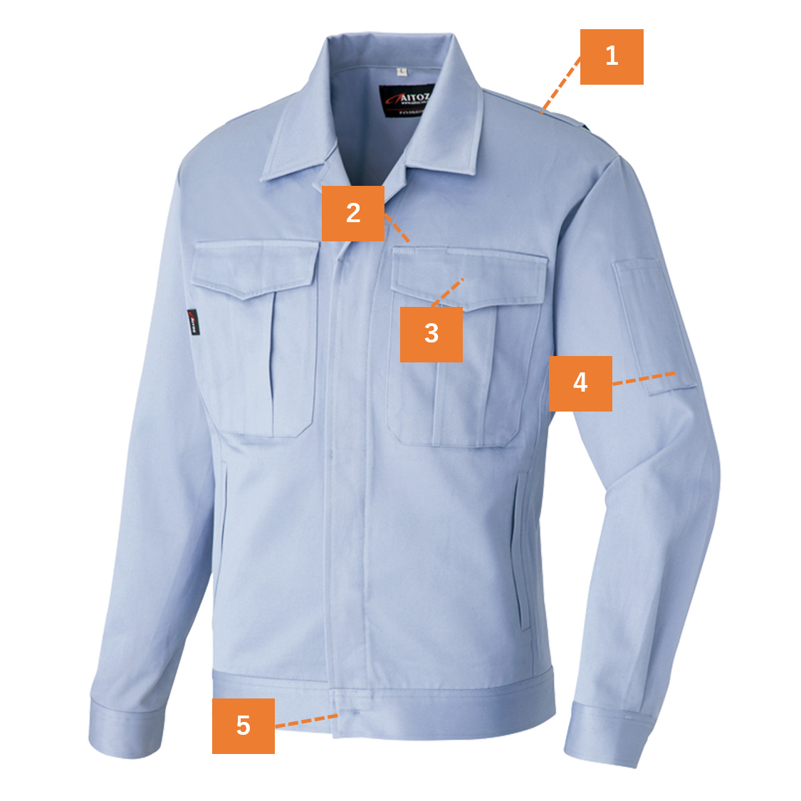 ワークスタイルの原点、タフな綿素材の長袖ジャンパー。