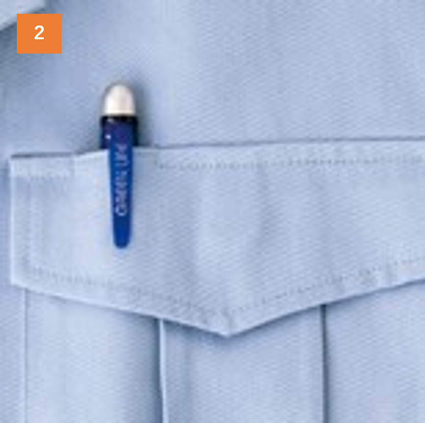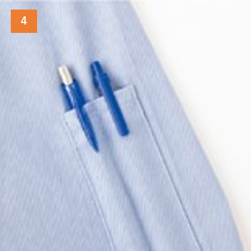 ペンやスケールなどが出し入れしやすい便利な胸ペン差しなど、機能性も充分。