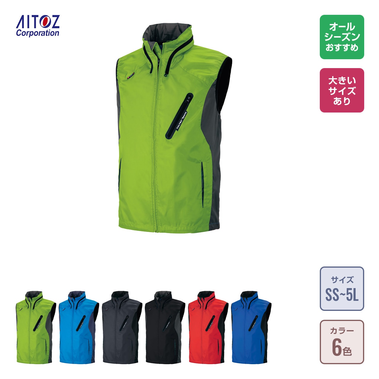 このベストは、軽量ポリエステル素材を使用し、仕事やイベントでの快適な着心地を提供します。襟部分には収納可能なフードを備え、必要なときだけさっと取り出せる便利な仕様。撥水加工も施されており、急な雨や汚れにも対応可能です。全6色のカラーバリエーションは、企業や団体のテーマカラーに合わせて選ぶことが可能です。刺繍加工やプリント加工でオリジナルデザインを加えることにより、よりプロフェッショナルなイメージを演出します。