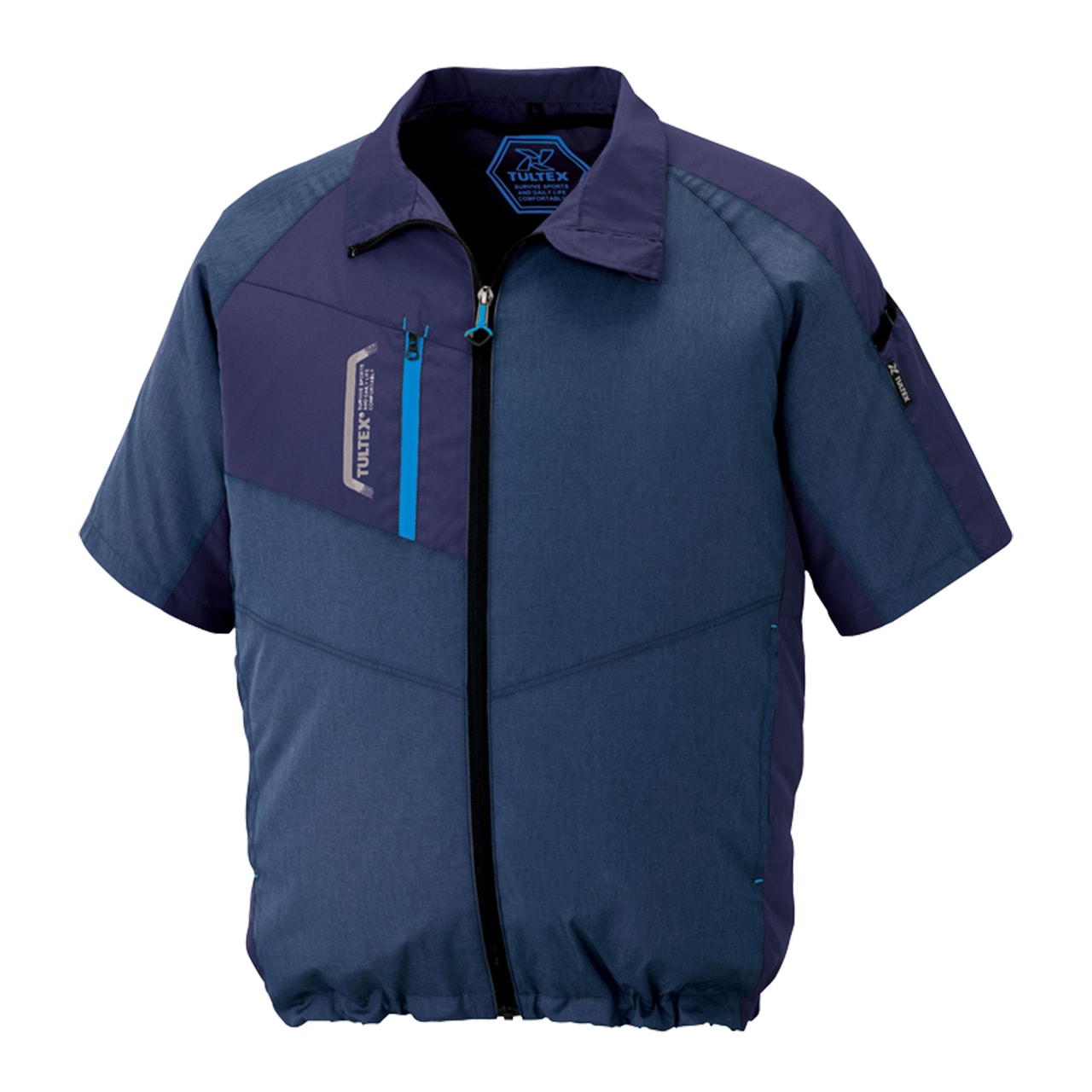 ポリエステル100%、マイクロタフタ仕様の半袖空調ジャケットです。