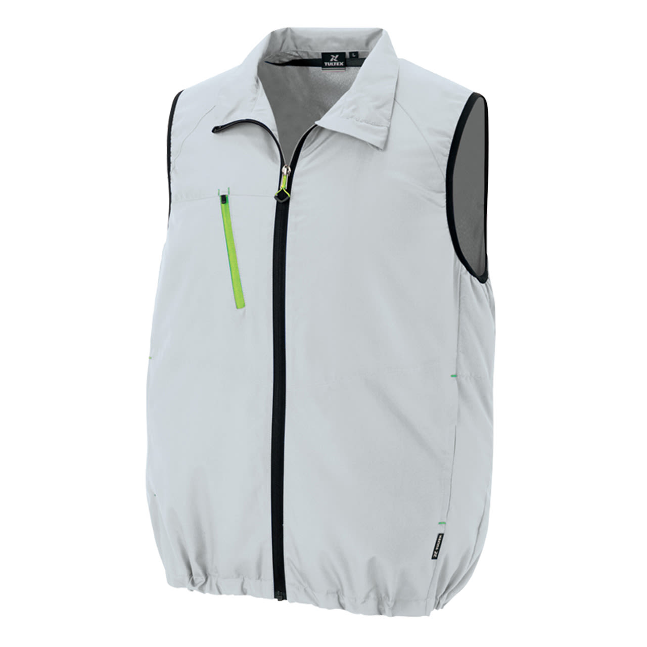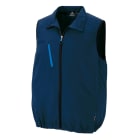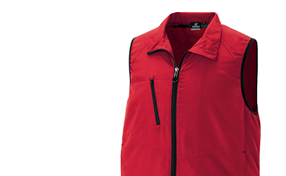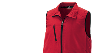撥水性が高く、汚れにくいので夏場の作業にピッタリ。胸元には使いやすい縦ファスナーポケット付き。首裏には反射材が備わっています。ウエストのポケットはスラッシュタイプでスッキリとした見た目に。首元の調整紐で冷気の流れをコントロールすることで快適な着心地を実現します。