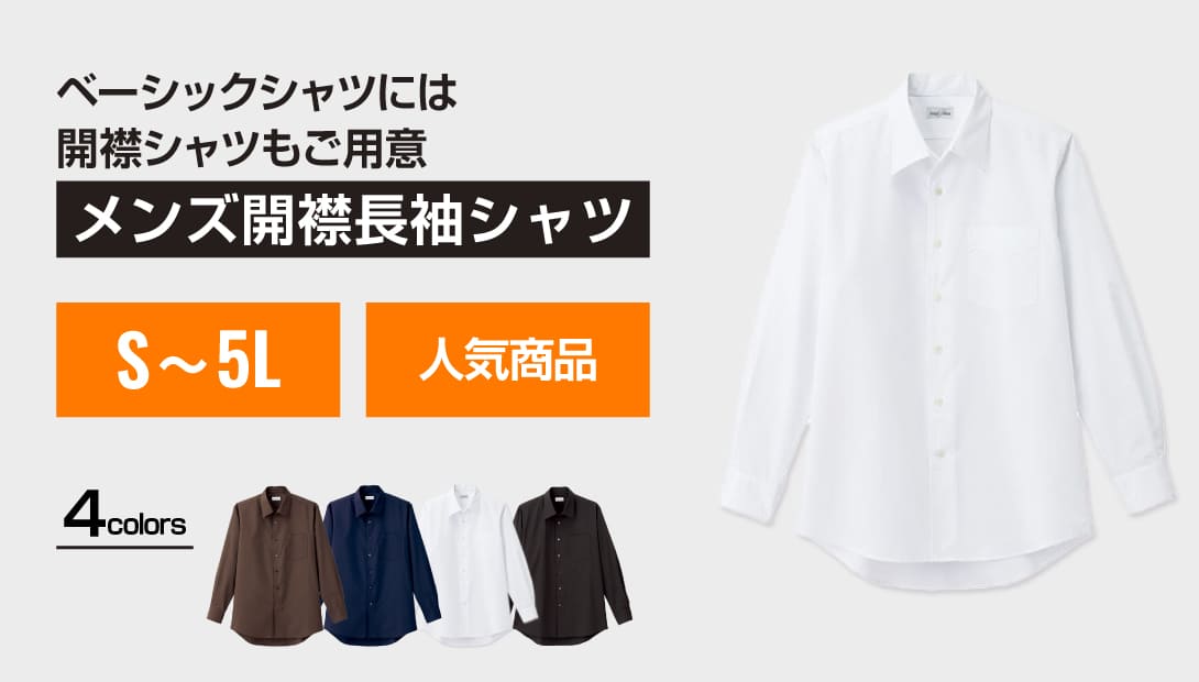 防シワ性のあるブロード生地を使用し、アイロンがけの手間を省けます。また、防汚加工を施しているため汚れがついても洗濯で落ちやすく、スタッフウェアにはぴったりの丈夫なベーシックシャツ。なめらかな着心地で、高級感もありさまざまなシーンに対応します。襟型はレギュラーカラー、ボタンダウンカラー、オープンカラー、スタンドカラーの全4タイプ。カジュアルからフォーマルまで幅広く対応。季節やシーンに合わせてお選びいただけます。