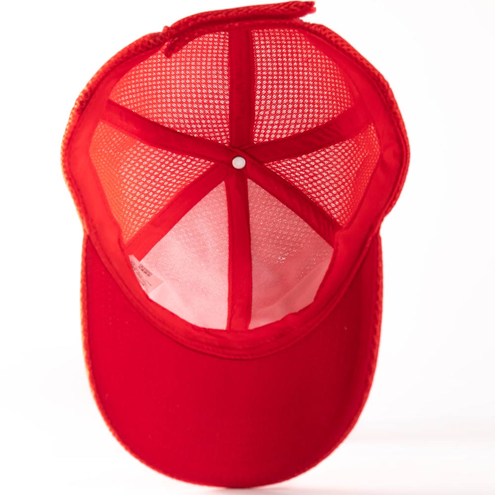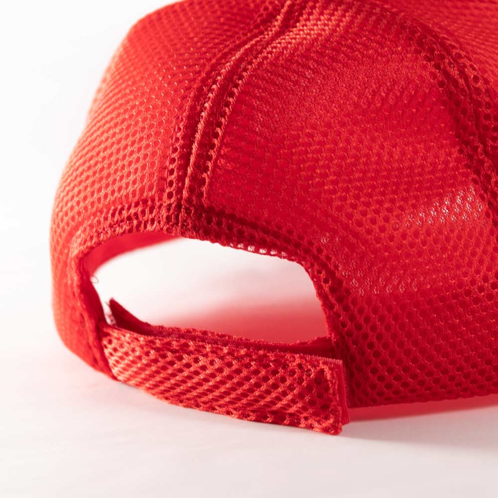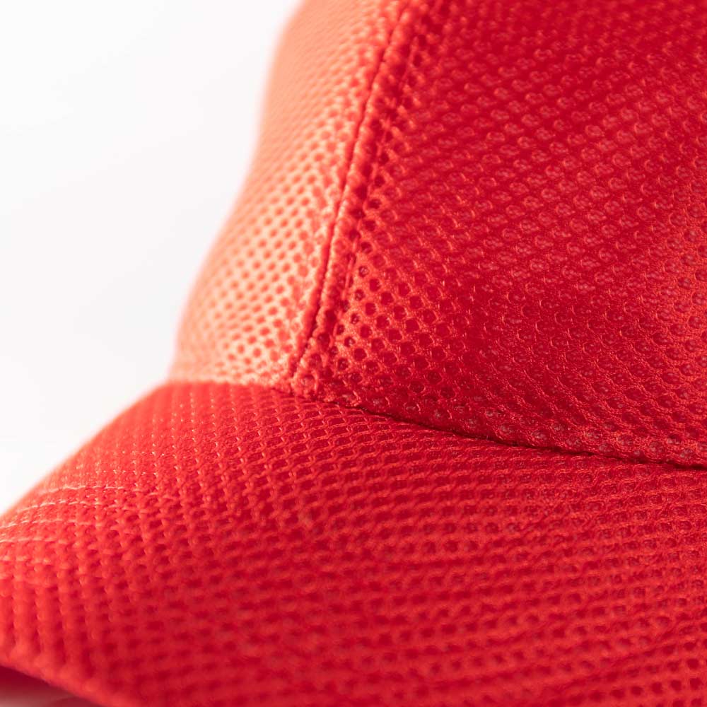キャップ全体が弾力性のあるポリエステルのメッシュ素材でできたキャップです。その為、通気性に優れており、蒸れやすい頭部をしっかりサポートしてくれます。色落ちが少ないことから企業様のユニフォーム用として人気のあるキャップです。
