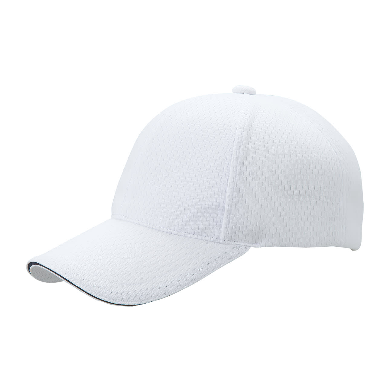 やや固めの風合いですが、とってもライトなかぶりごこちのキャップ。全体がメッシュですが刺繍加工は問題いなく可能です。オーソドックスな形状なので刺繍を入れることによりキャップのグレードがアップします。