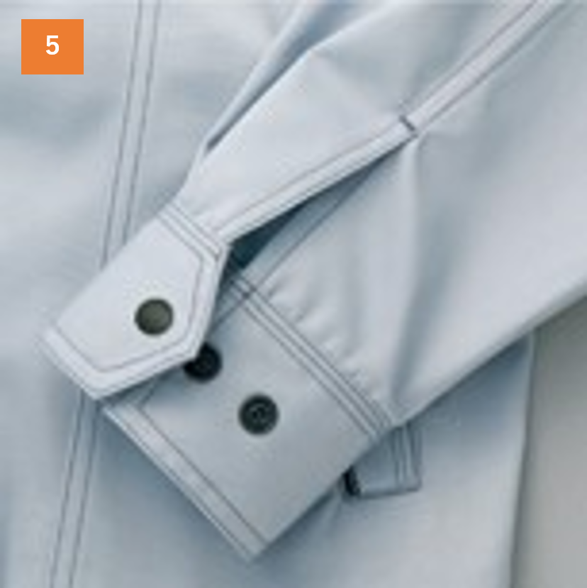 アクションプリーツがあるので肩周りの動きも阻害されず、着心地にもこだわった商品です。