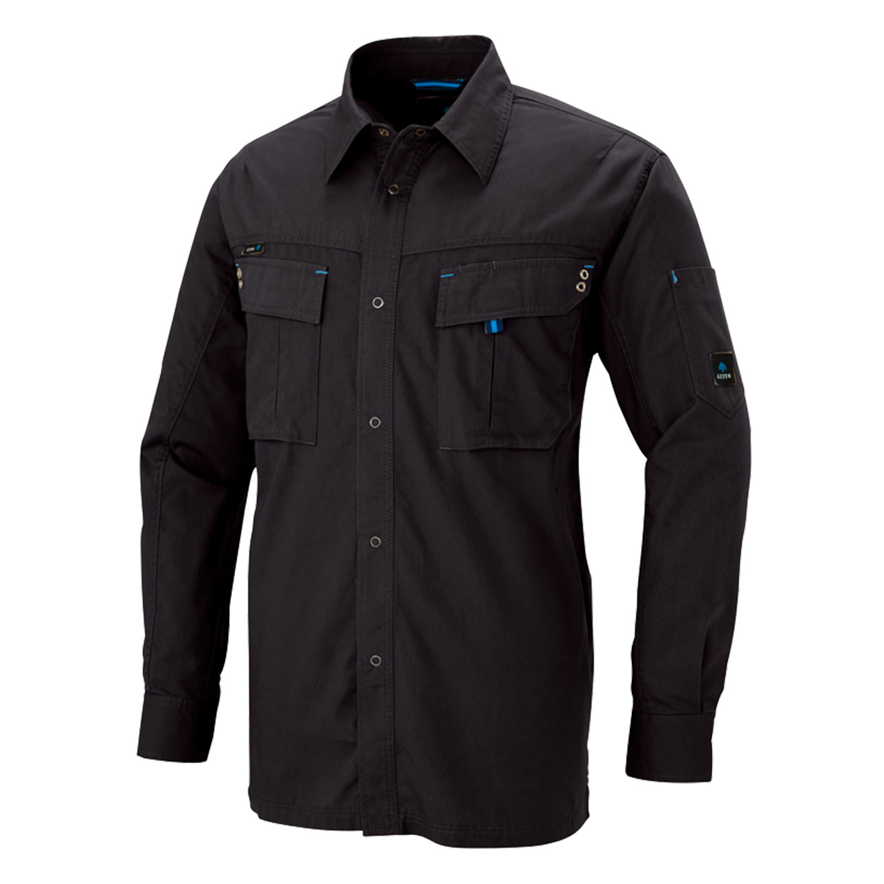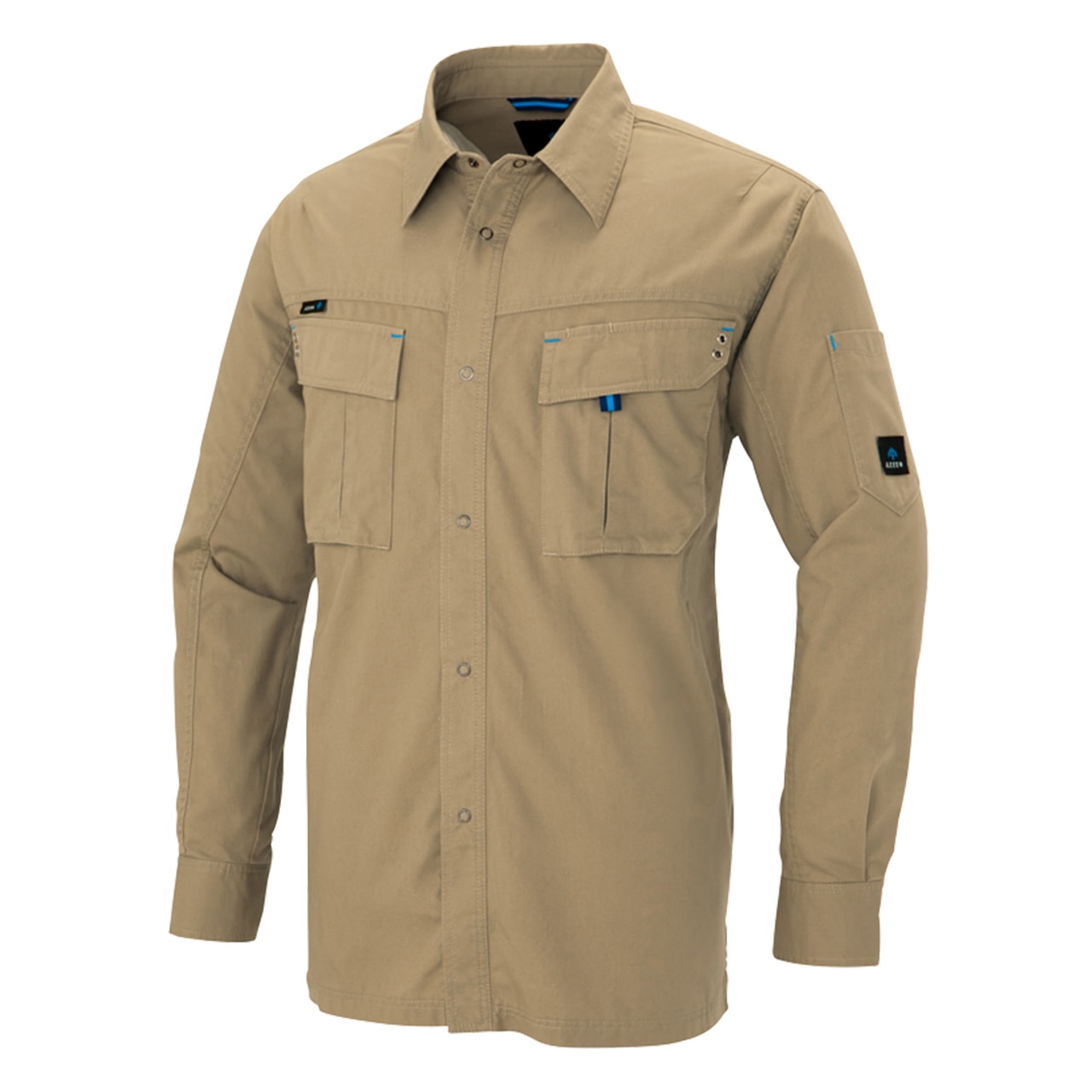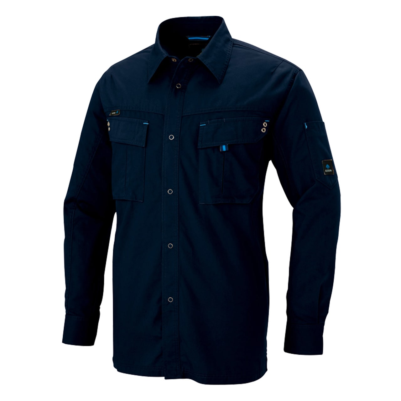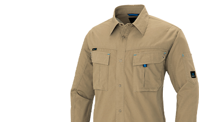 綿100%、機能性と動きやすさに優れた長袖シャツです。
