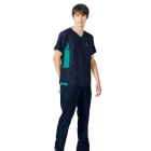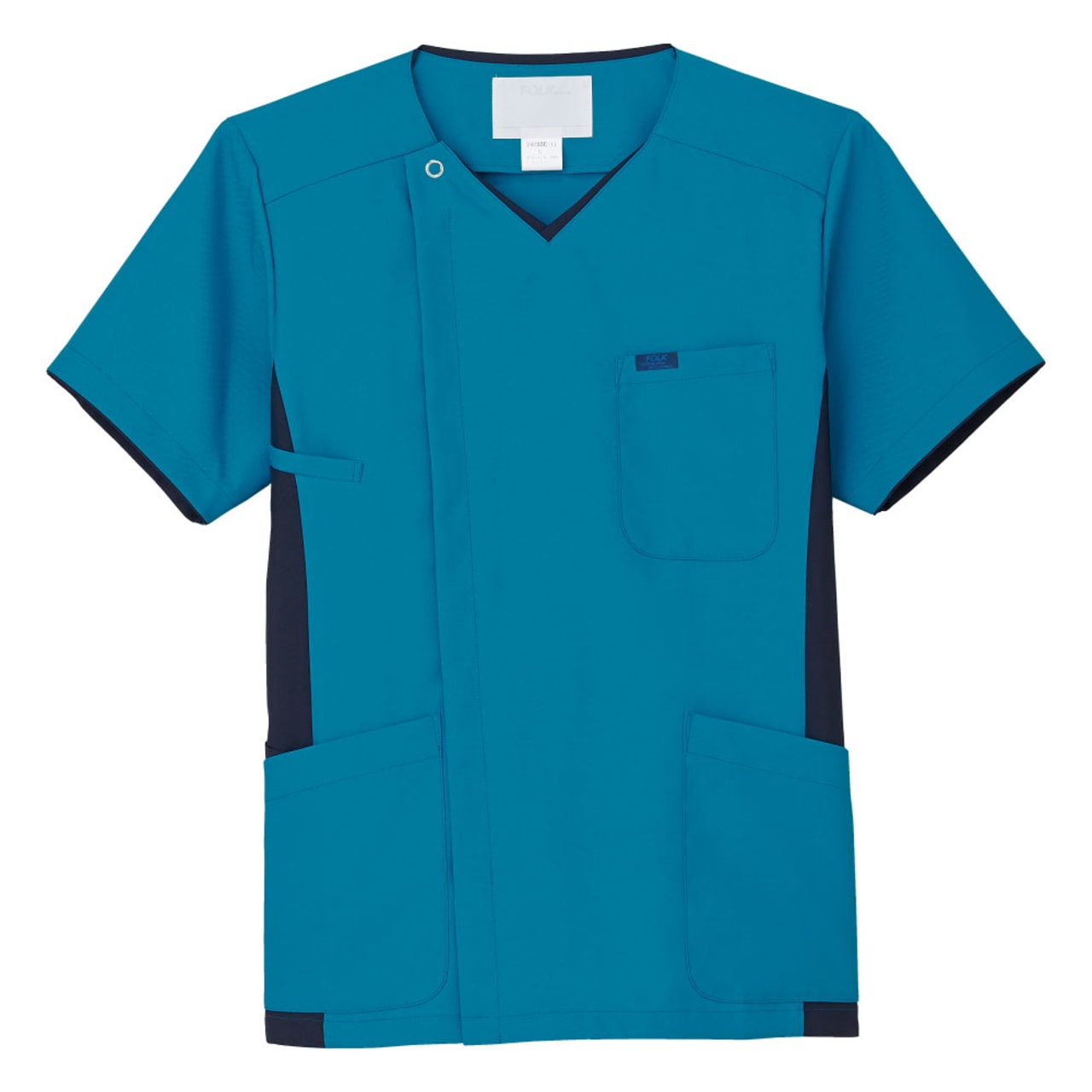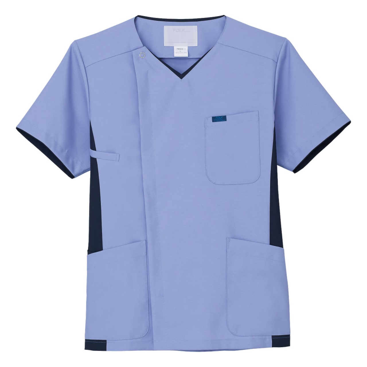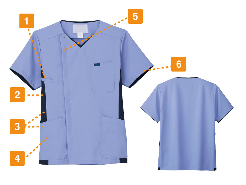 メンズ用スクラブ。脇に効かせたラインがシャープなシルエットを演出しております。