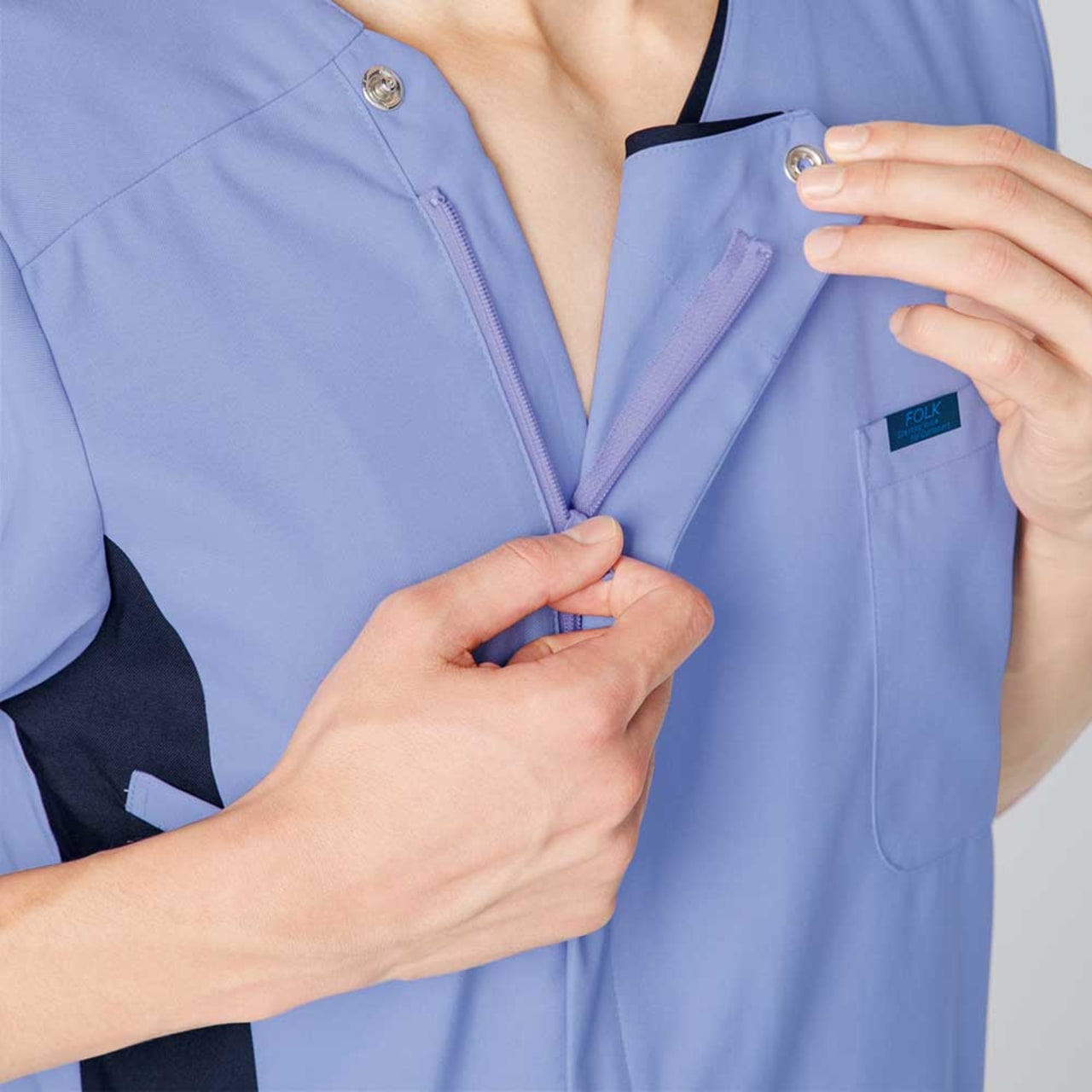 メンズ専用のジップタイプのスクラブ。脇に入ったラインがシャープな印象を与えてくれます。カラー展開が爽やかの色合いのものから落ち着いた色合いのものまで幅広くご用意があり、さまざまなシーンでご活用が可能なスクラブです。