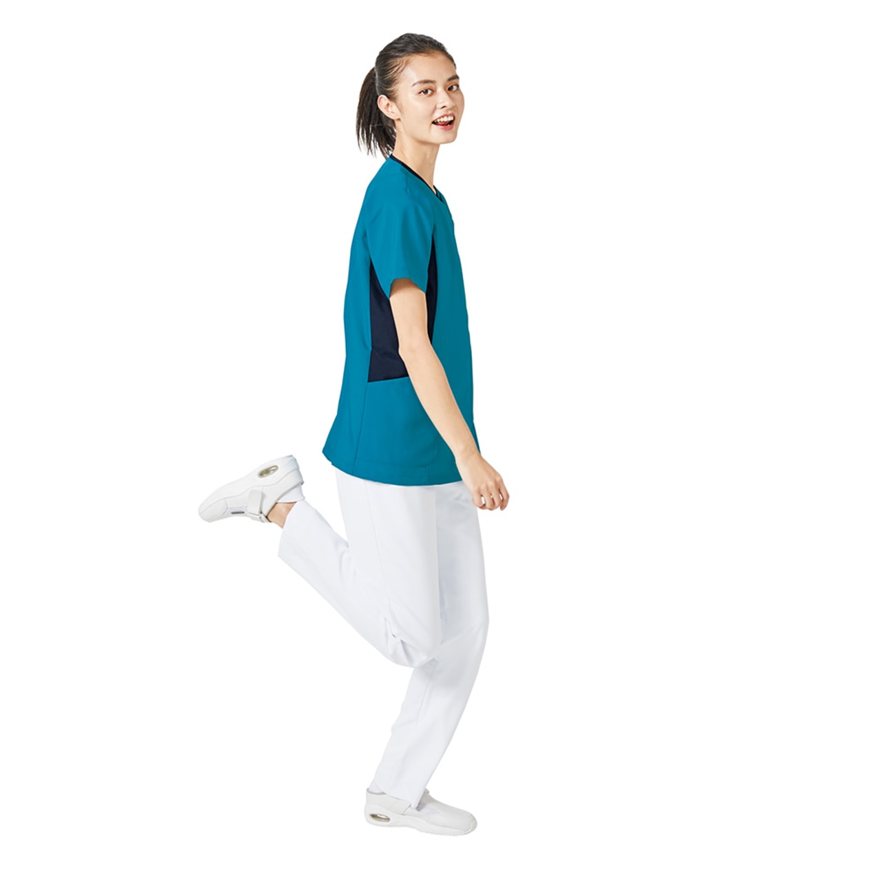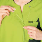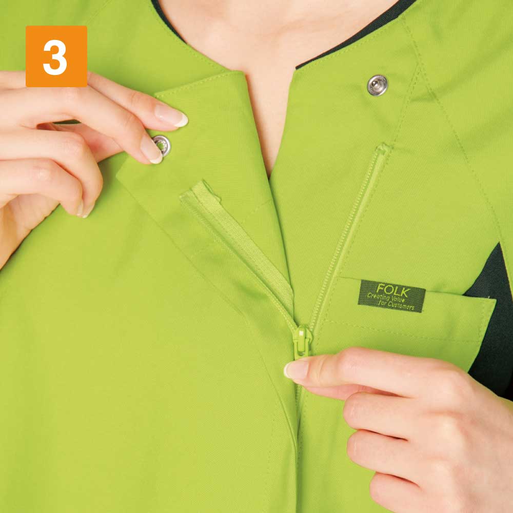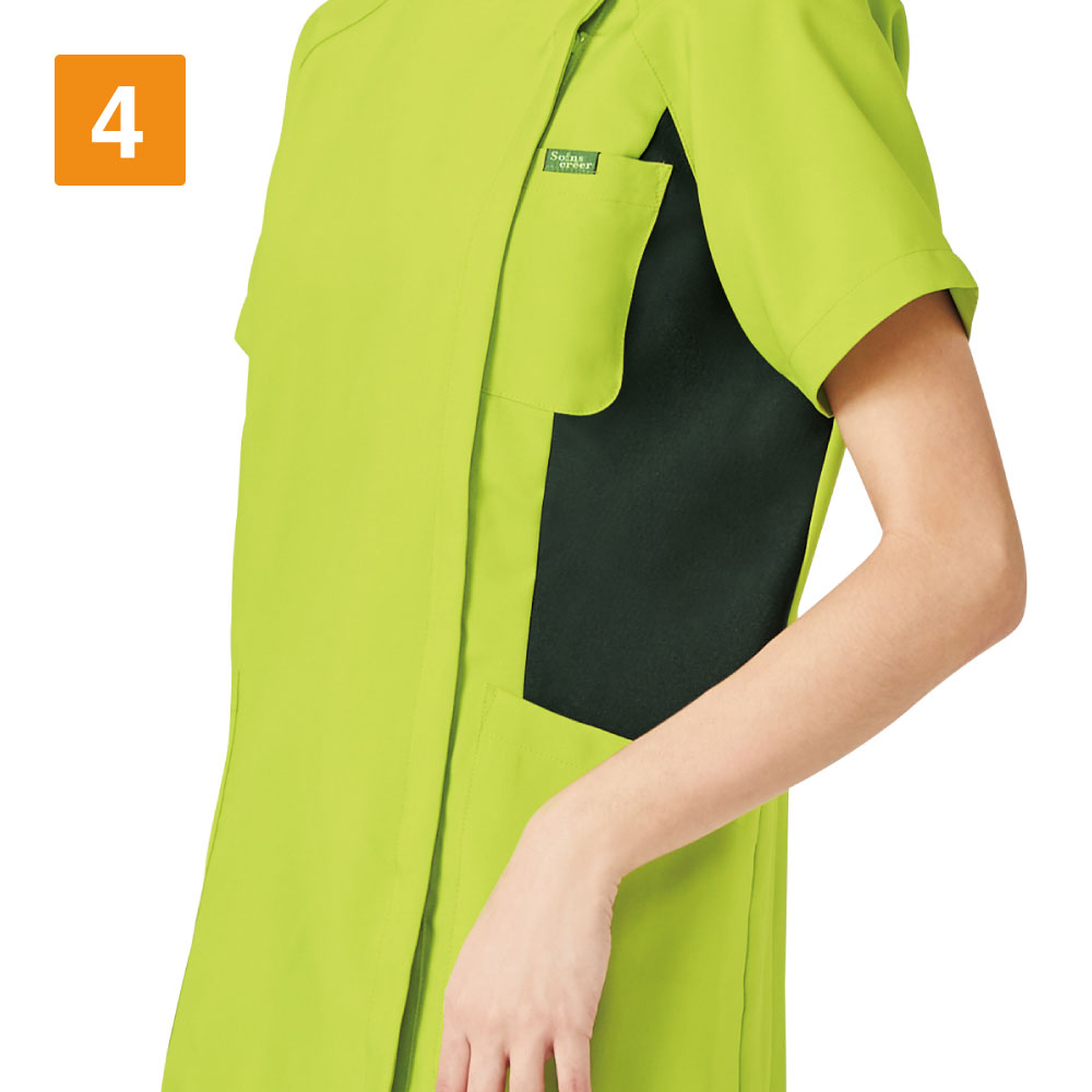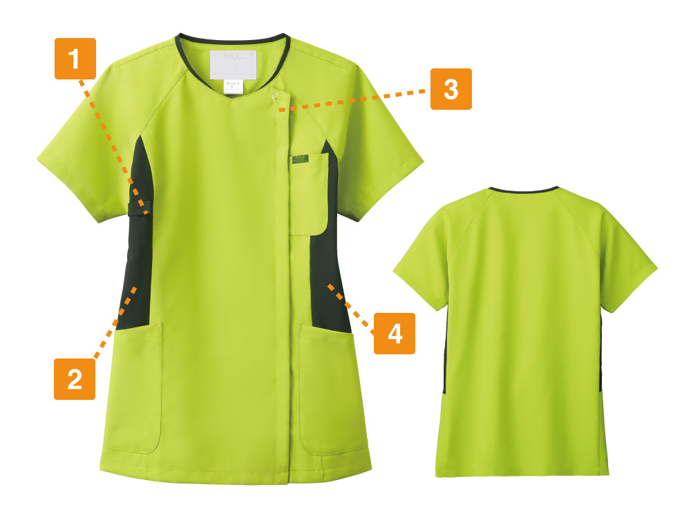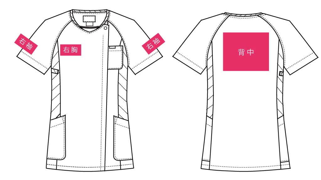 脇にある切替しのデザインがボディラインをスッキリ見せてくれるとてもうれしいスクラブ!レディース専用のスクラブでカラー展開も発色の良い色合いになっております。こちらのスクラブは背中に大きく刺繍を入れるとカッコよく決まります!