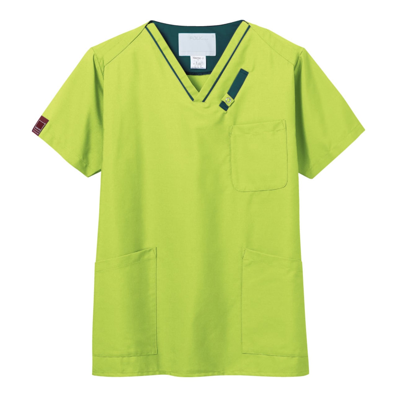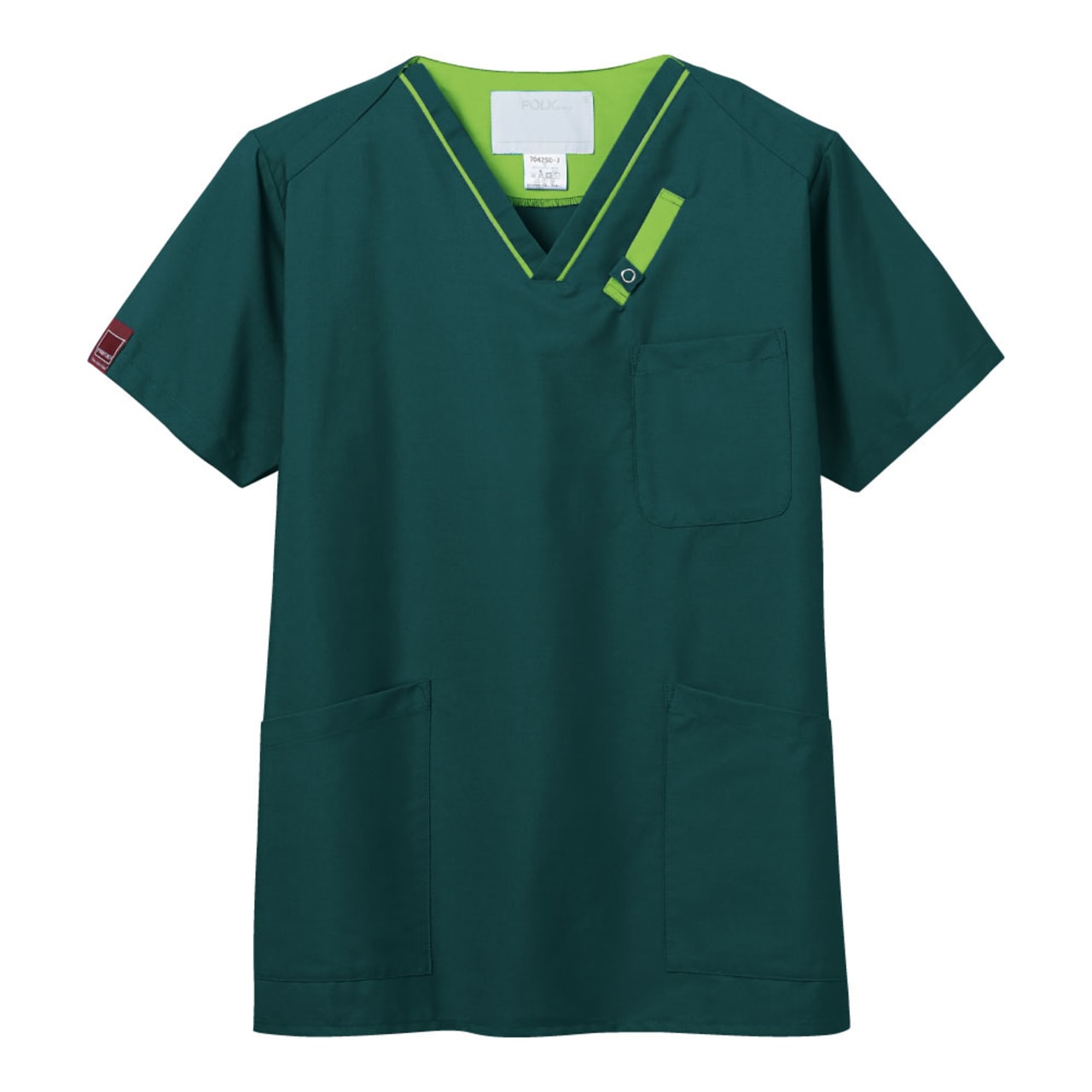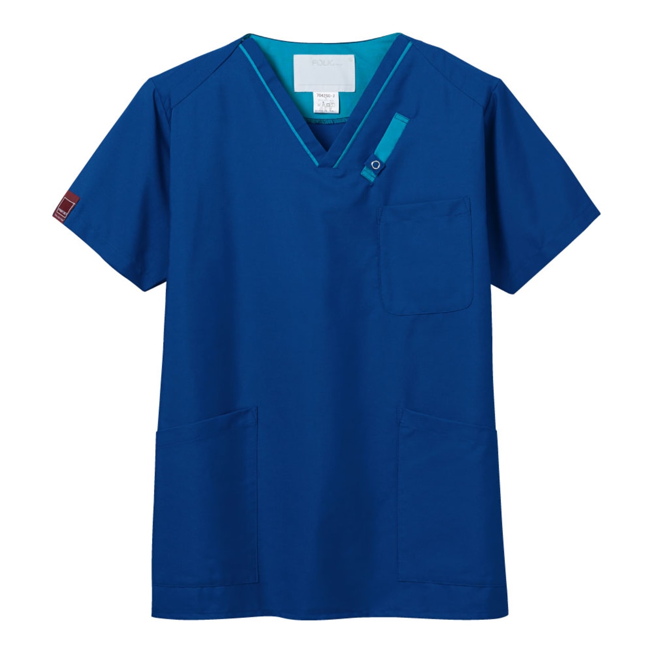 豊富なカラー展開のPANTONEのスクラブ。Vネックの襟元にはボディカラーとは異なる配色のパイピングを施しアクセントに。PHS.PDA 重量拡散ポケットやPHS.PDA 落下防止タブ付きで医療現場でアクティブに働く人たちのことを考えたスクラブとなっています。使用している「スクラブポプリン」はポリエステル65%、綿35%のダンガリーシャツのような肌触りと、使い込むほど風合いの出る素材感が特徴です。
