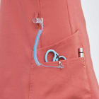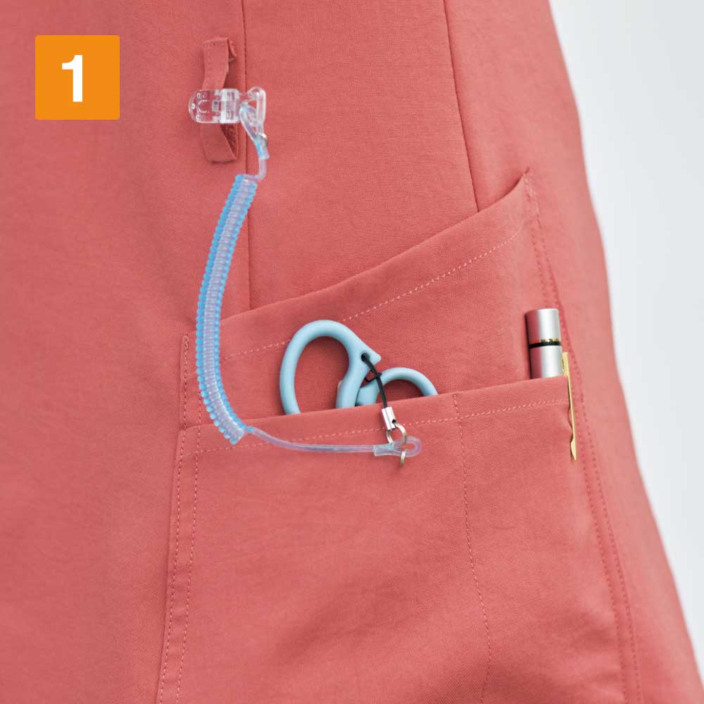 人気のディッキーズシリーズのビンテージ風&ストレッチ素材のスクラブ。何度もウォッシュをしたような独特な風合いが魅力。吸水速乾性に優れ、動きやすい高いストレッチ性も実現。 左腕にはボディカラーと合わせたディッキーズタグがアクセントになっています。携帯電話ポケットやタブレットサイズの大きめポケット、肩ループなども付いているので機能性も充実しています。