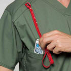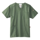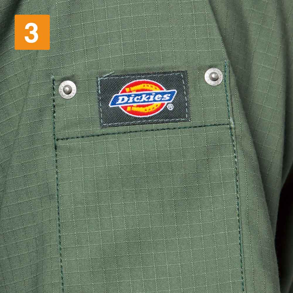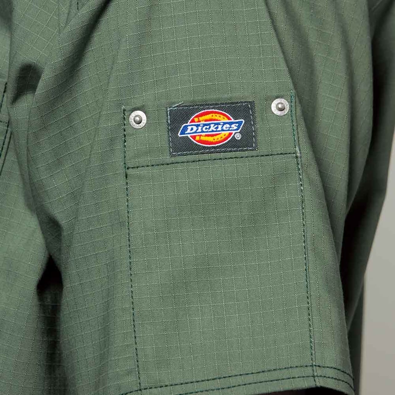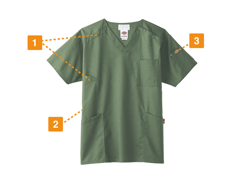 軍服などで見られるリップストップ織りを採用、格子状の織りは生地が裂けても途中で止まるほどの強度です。 動きやすいストレッチ性も持ち合わせた生地は、吸湿速乾性もあります。 ディッキーズらしい洗いざらしのような独特の風合いも魅力。 左腕ポケットのリベットがアクセントととなり、他のスクラブにはない遊びごごろがあります。