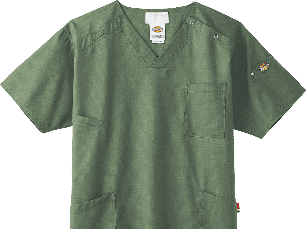 ワークユニフォームとして人気の高いディッキーズのスクラブ。格子状の頑丈な素材を使用しているため繰り返しの強い選択にも耐えられるタフなアイテム!さりげなくついているディッキーズタグがカッコいいスクラブ。