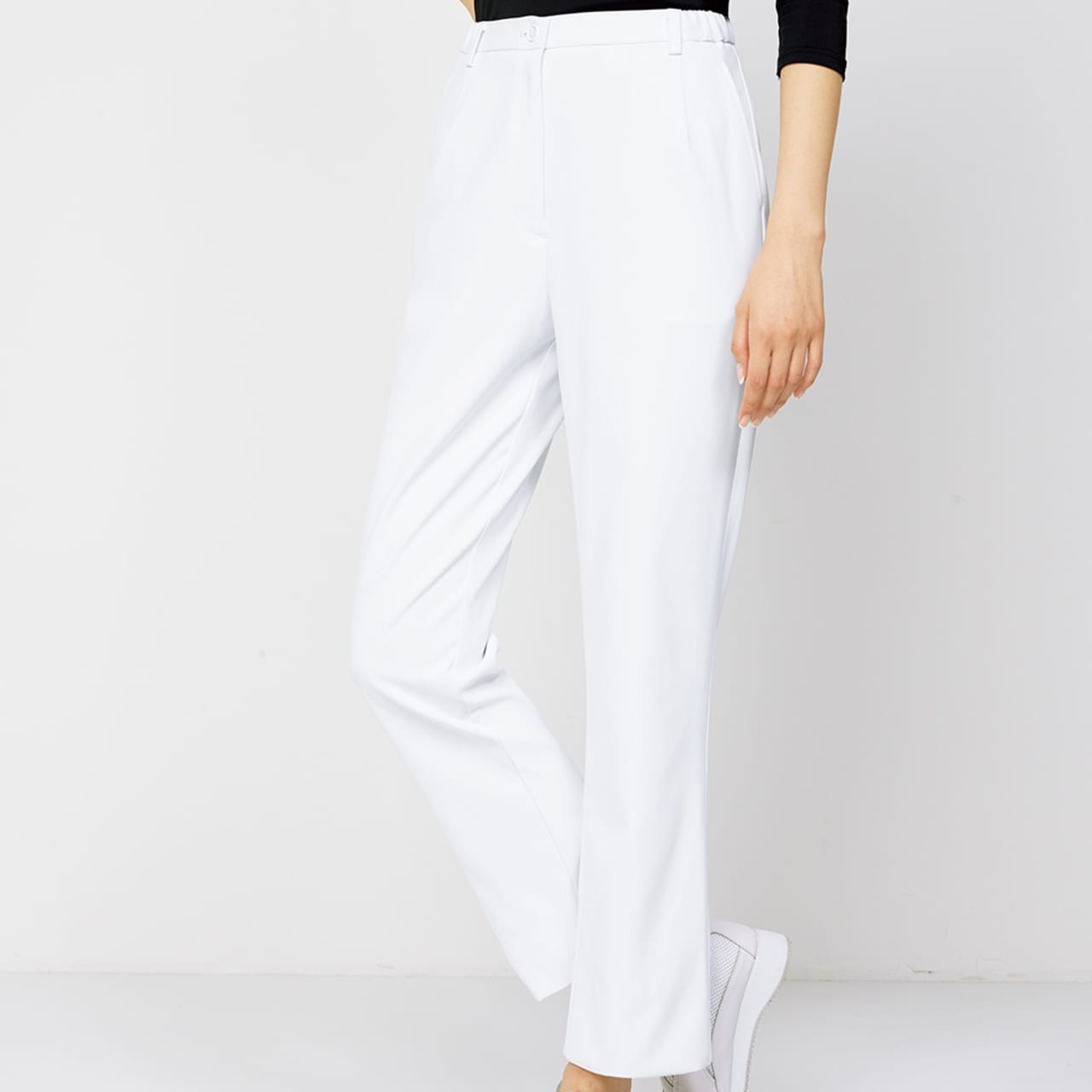 ストレッチの効いた新素材で動きやすさ抜群のパンツ。白でも安心の防透性で安心して着用いただけます。 伸縮性のある新素材ノンPUストレッチはポリウレタンを使用せずに高伸縮性を実現、動きやすいパンツです。 女性は使用頻度の低いパンツの後ろポケットが排除されているので、腰回りもすっきりしています。