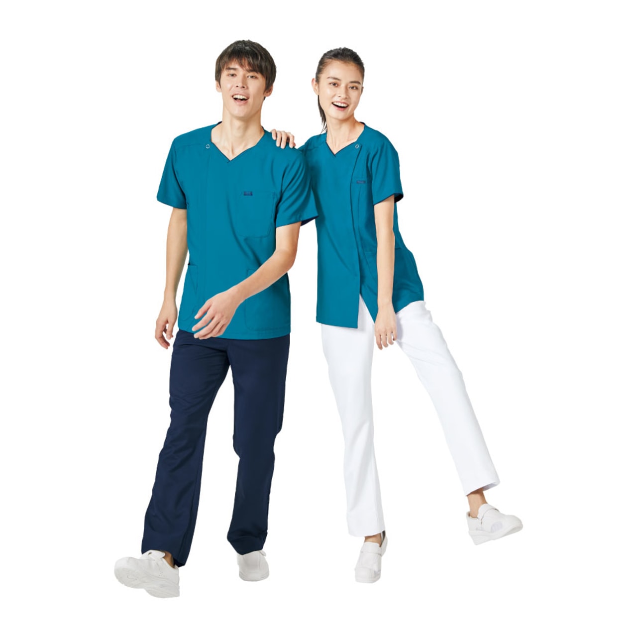 男女ペアで着られる”背中・脇ニット”のアクティブスクラブです。