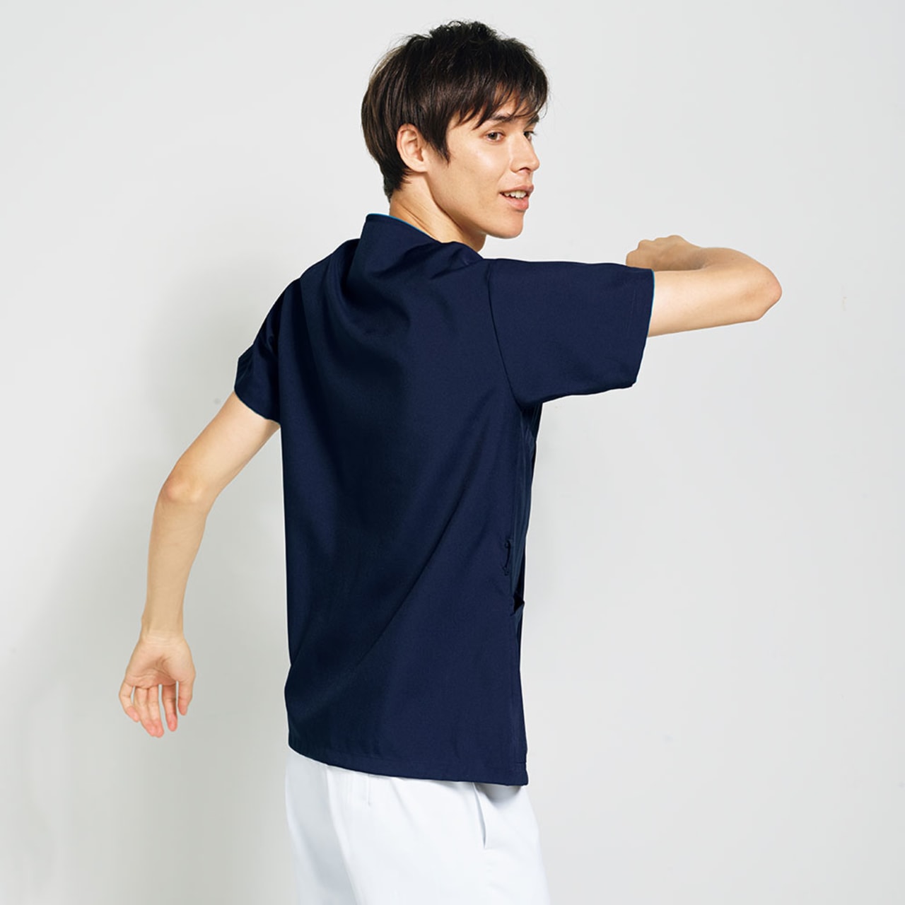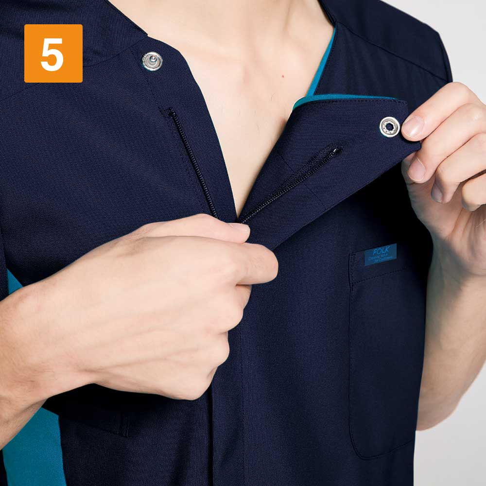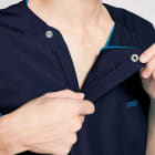 7043SCスクラブと同企画でメンズサイズ専用のスクラブです。背中全面に伸縮性と通気性のよいニット地を潤沢に使用しており動きやすさは抜群!スポーツウエアー感覚のスクラブです。メンズらしさを強調したカラー展開にも注目のスクラブ。