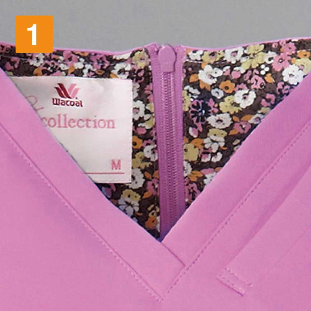 ワコールブランドのスクラブ。まるでおしゃれなワンピースのようなシルエットが特徴のアイテム。シンプルなつくりですがどこか高級感が漂うスクラブです。裏地には花柄生地がついており女性らしさを強調しております。かわいいカラー展開にも注目です。