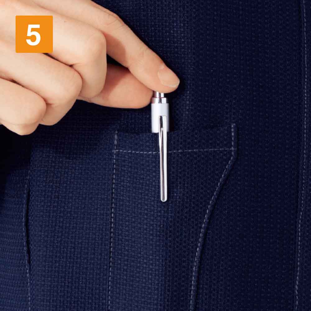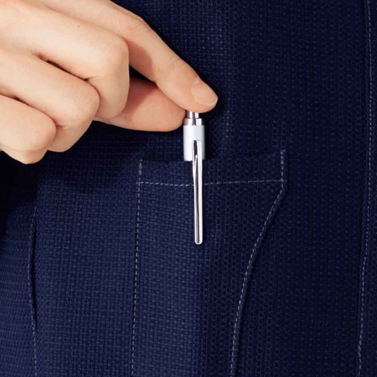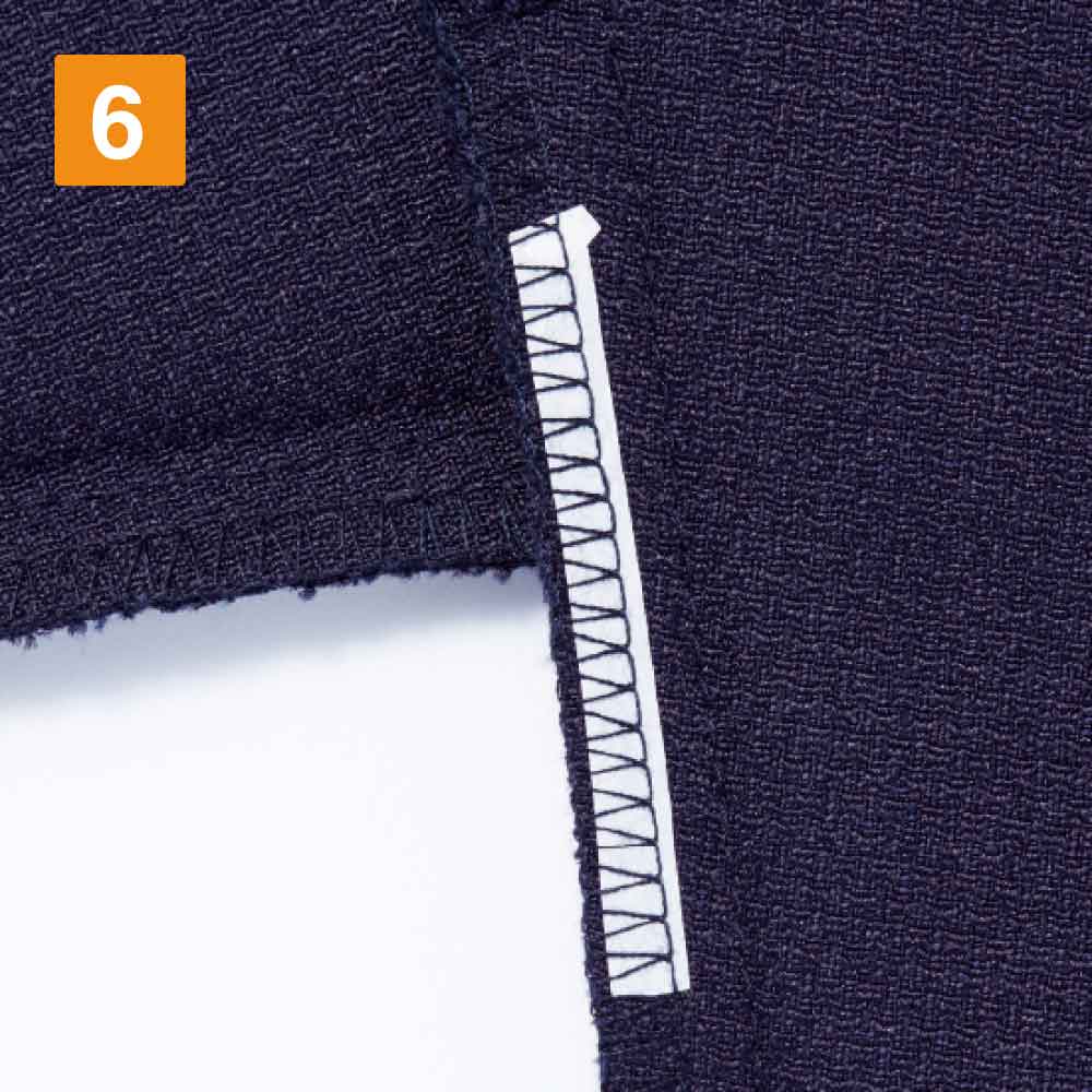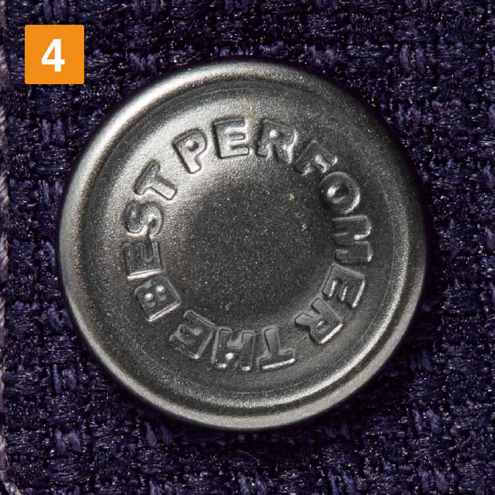 ワークウエアとして伸縮性と強度に優れたストレッチジャンパーですが、すっきりしたシルエットも備えており高いデザイン性も持っています。腰ポケットのレッドファスナーは3色どのカラーにもある「Jawin」らしいワンポイント。シンプルで落ち着きのあるカラーによく映えます。左はフラップ付きポケット、右はファスナー付きポケットとデザインが異なるところも特徴です。スマホやメモ帳は左に、細かい物は右にと使い分けができます。ファッション性の高いウエアですが、ポリエステル率の高いボディフィールオックス生地を使っているため動きやすさと速乾性にも優れています。ツヤの落ち着いたシルバー色の金属ボタンも耐久性と実用性に優れた仕様です。