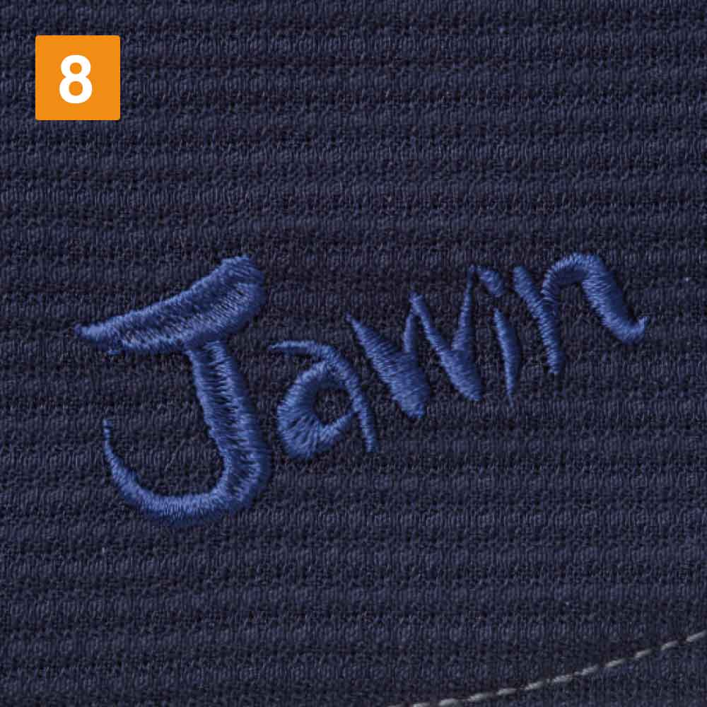 作業着と言えば洗濯に強い刺繍加工です。社名・ロゴマーク・イラスト 様々なものが刺繍可能です。