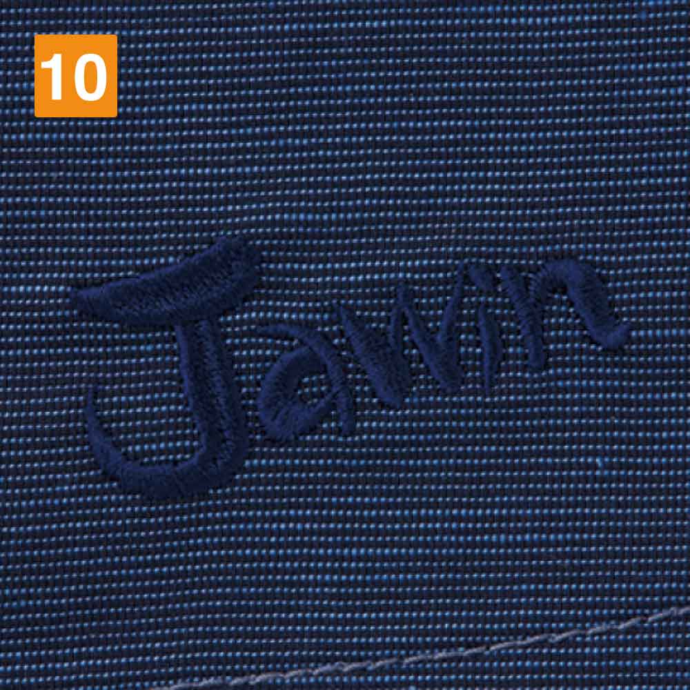 作業着と言えば洗濯に強い刺繍加工です。社名・ロゴマーク・イラスト 様々なものが刺繍可能です。