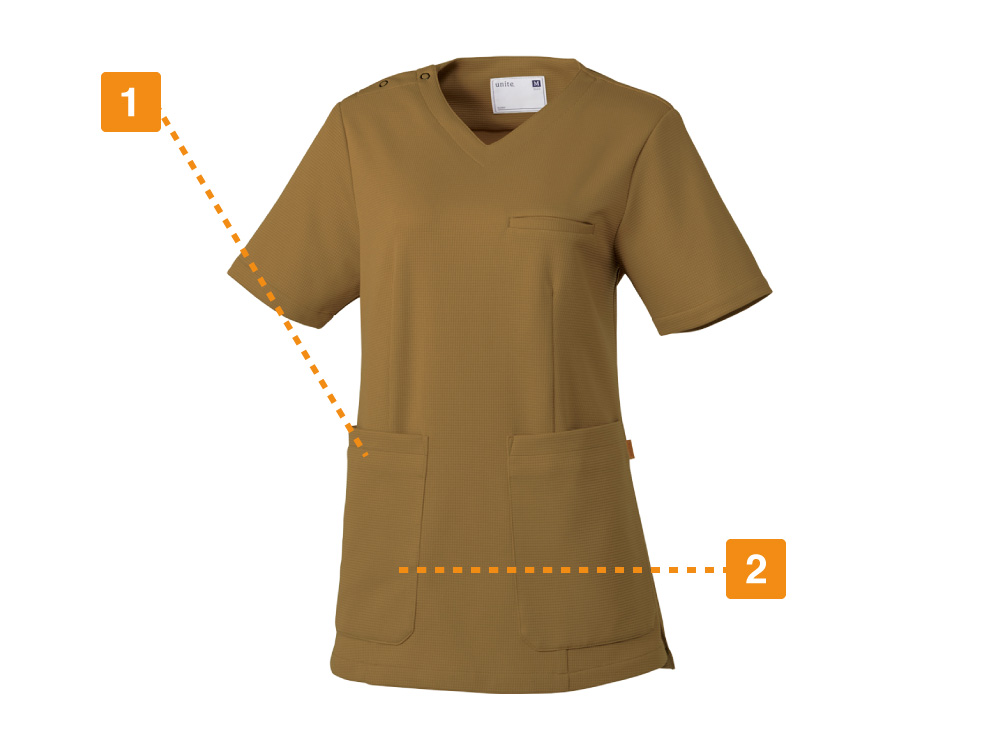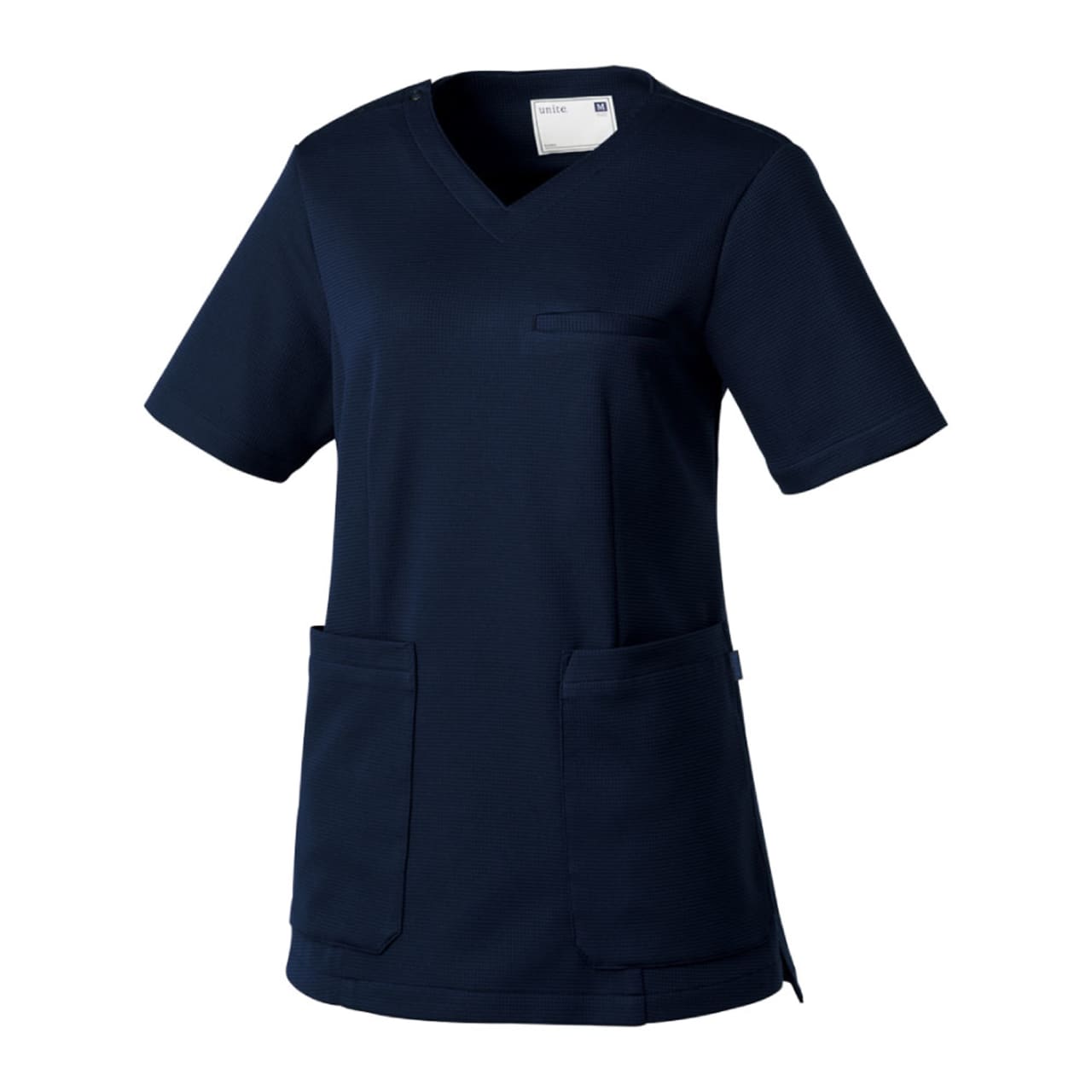 柔らかい素材を使用したスクラブなので長時間の着用のストレスを軽減してくれます。UN-0075メンズスクラブと同企画、同素材のアイテムなので男女ペアで揃える必要があるお客様にお勧めです。形状はオーソドックスなスタイルのスクラブ。