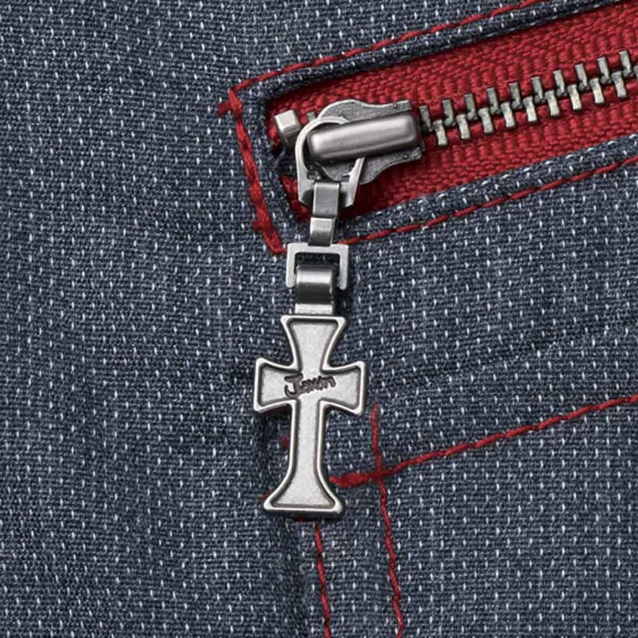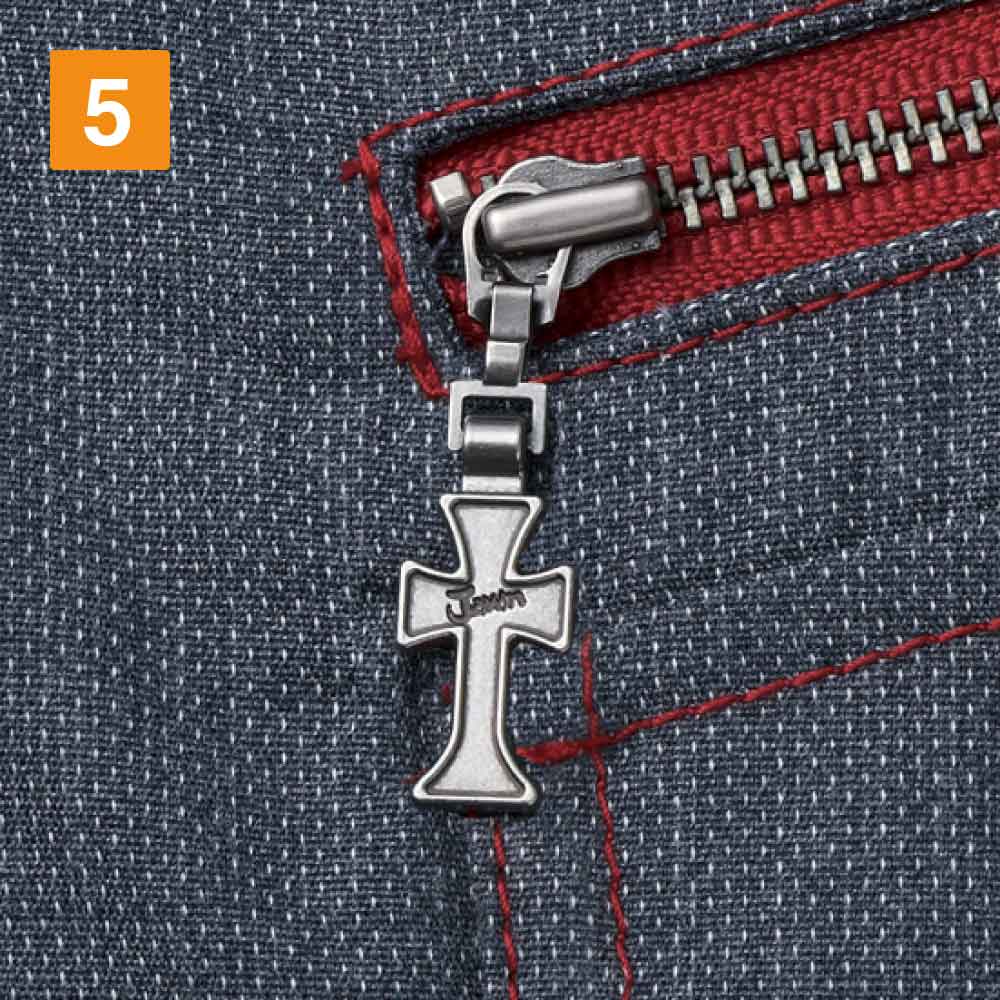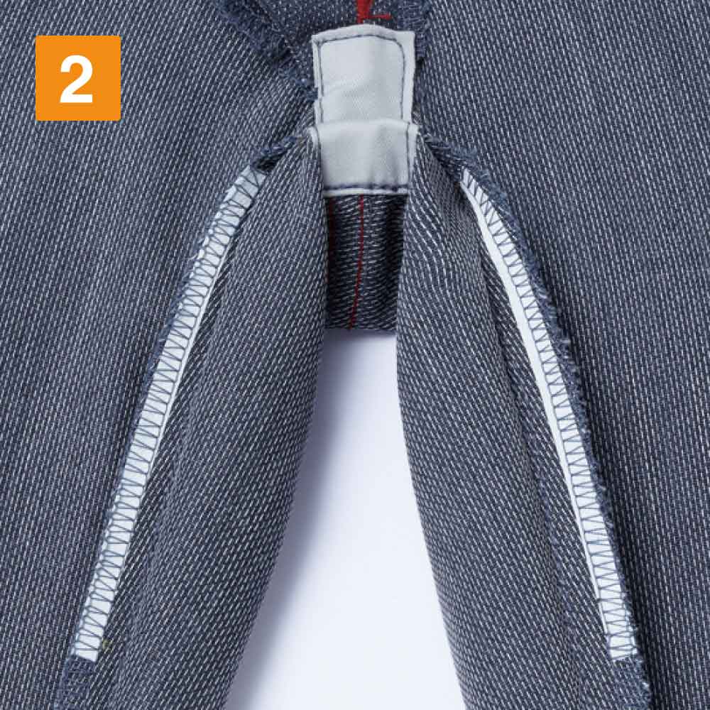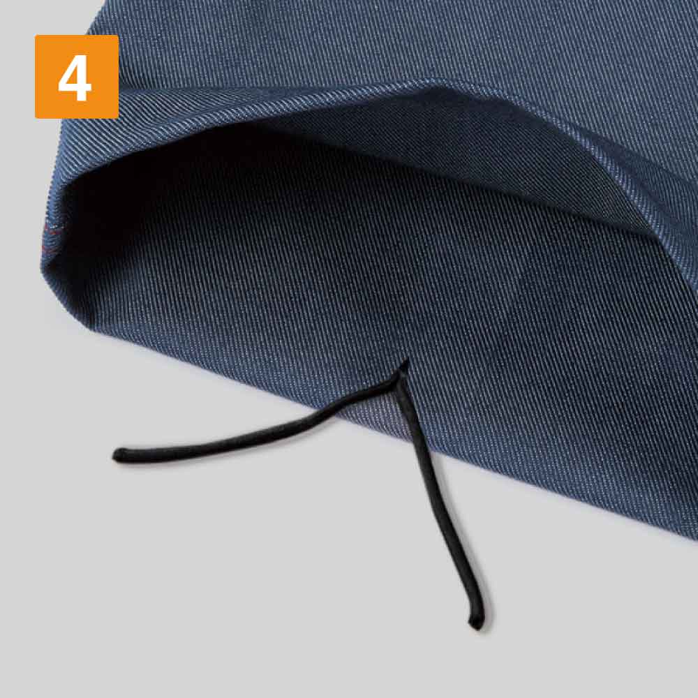 ノータックカーゴパンツは、お揃いのジャケットに合わせてデザイン性の高いパンツとなっています。デザインボタン、ロゴ入りスライダー、革ラベル、アシンメトリーデザインと意匠性が高いこともおすすめポイントです。11サイズ・4色展開になっているので、自分の体形や好みから選ぶことができます。丈詰めをすると裾紐通し穴が使えなくなるので、裾を絞ったり上げたりしたい場合には、裾紐通し穴にゴムを入れて丈を調整することをおすすめします。帯電防止素材なので静電気が溜まりにくく、静電気による着火事故などを防ぎ作業しやすいように設計されています。