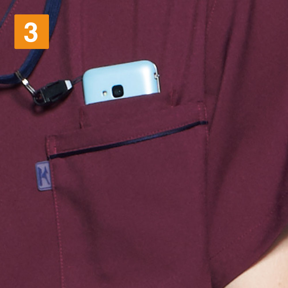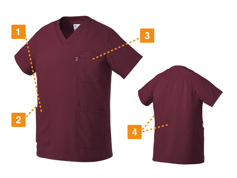 スポーツメーカーミズノのスクラブ。充実した機能がたくさんついているアイテムです。ミズノのロゴは控えめについており、オーソドックスなスタイルの中に洗練されたデザイン性を感じさせてくれるスクラブです。男女兼用で着用が可能です。