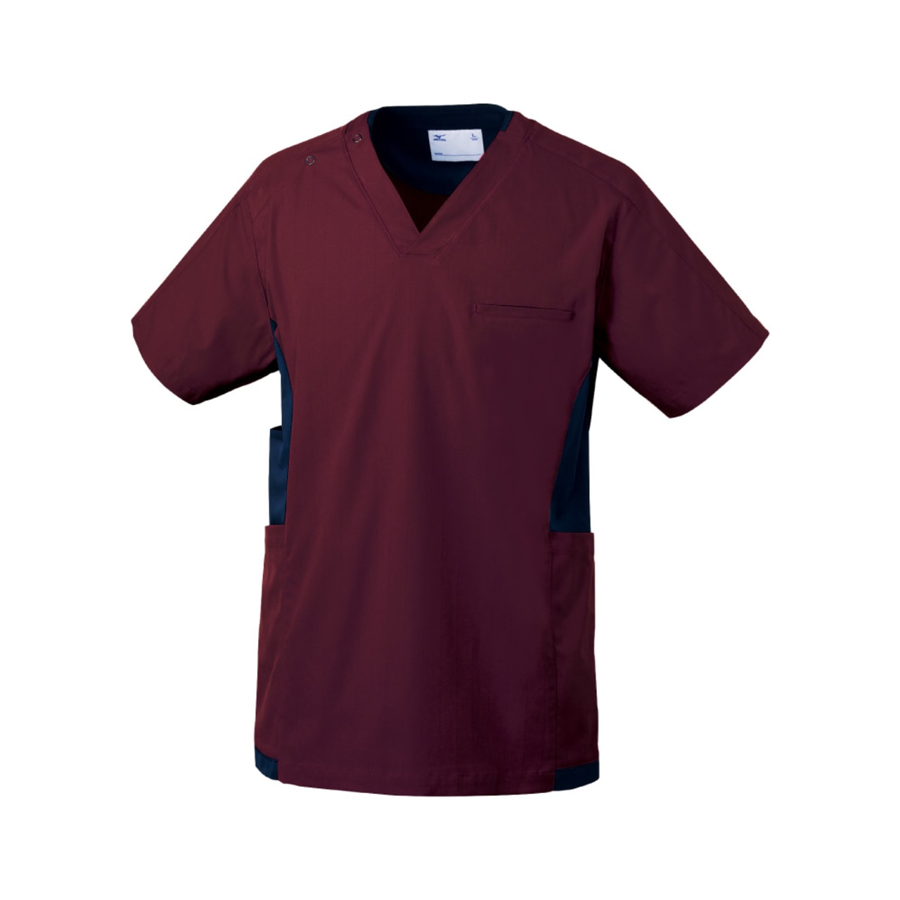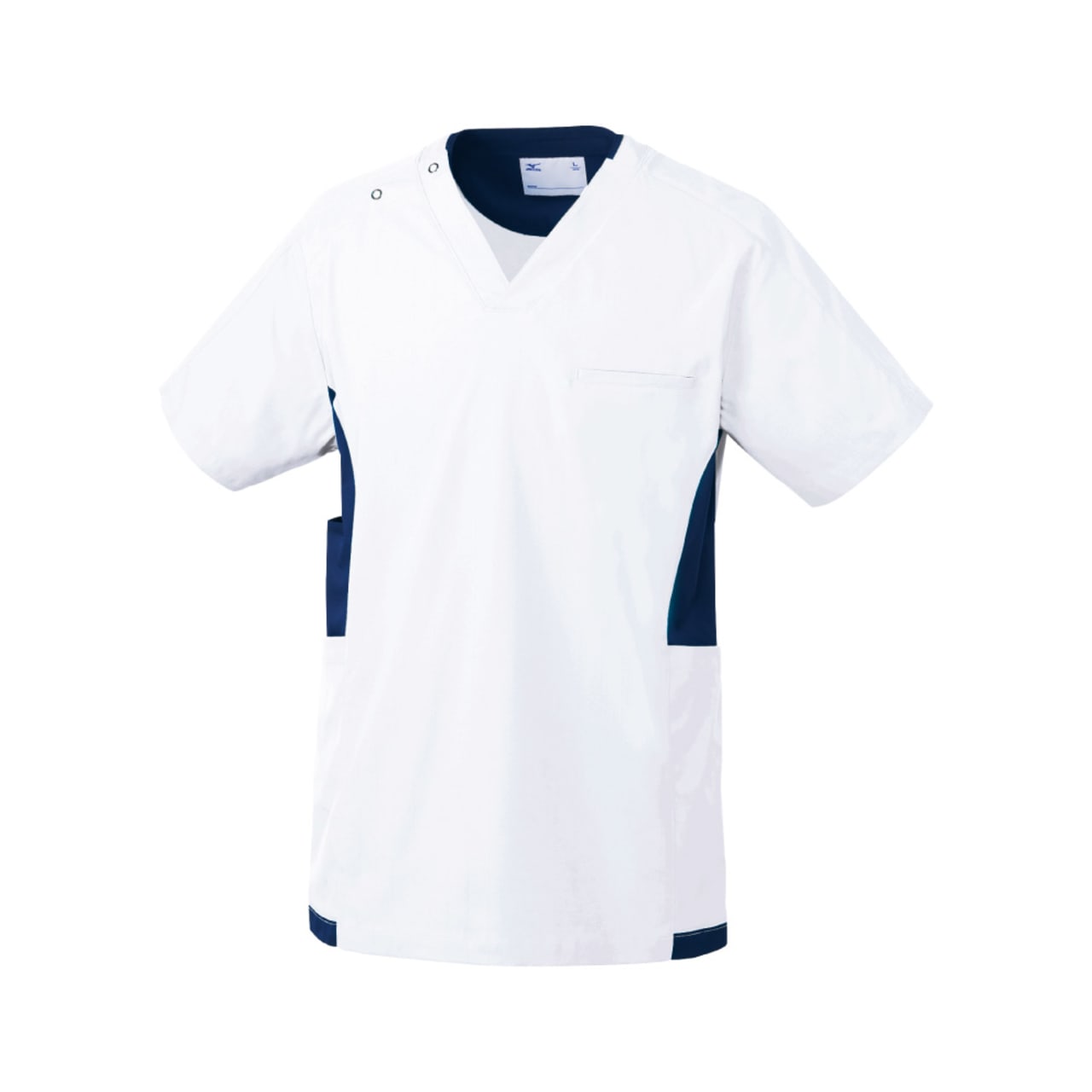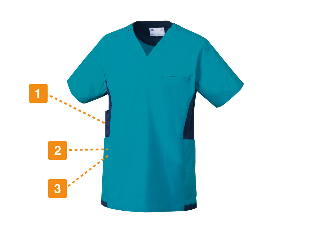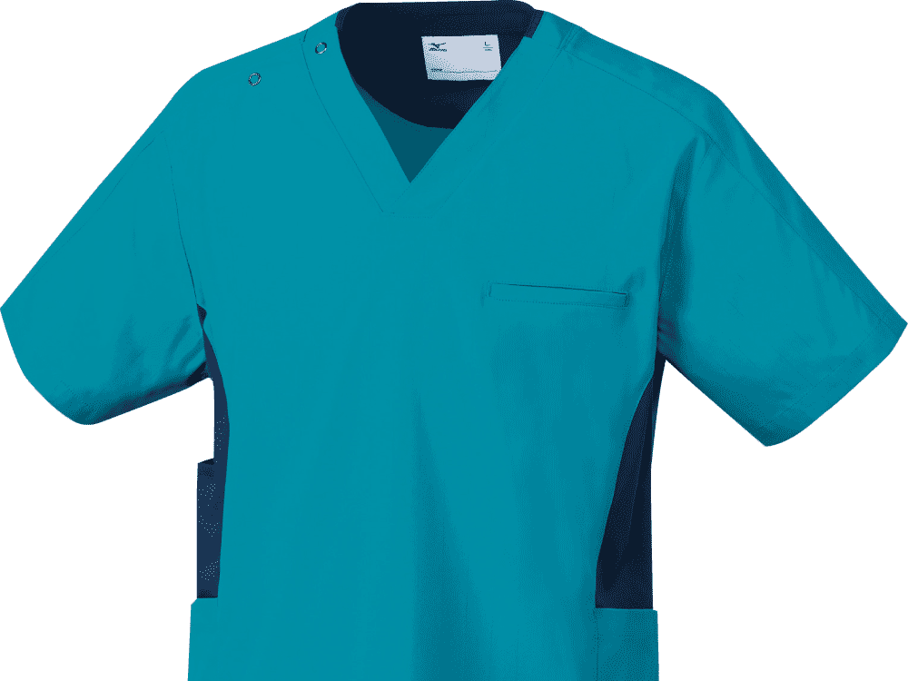 スポーツメーカーであるミズノのスクラブ。脇に切替しが入っておりスポーツメーカーのスクラブらしくスポーティーな印象を与えてくれます。刺繍を入れる場合は背中やソデに入れるのがおすすめです。