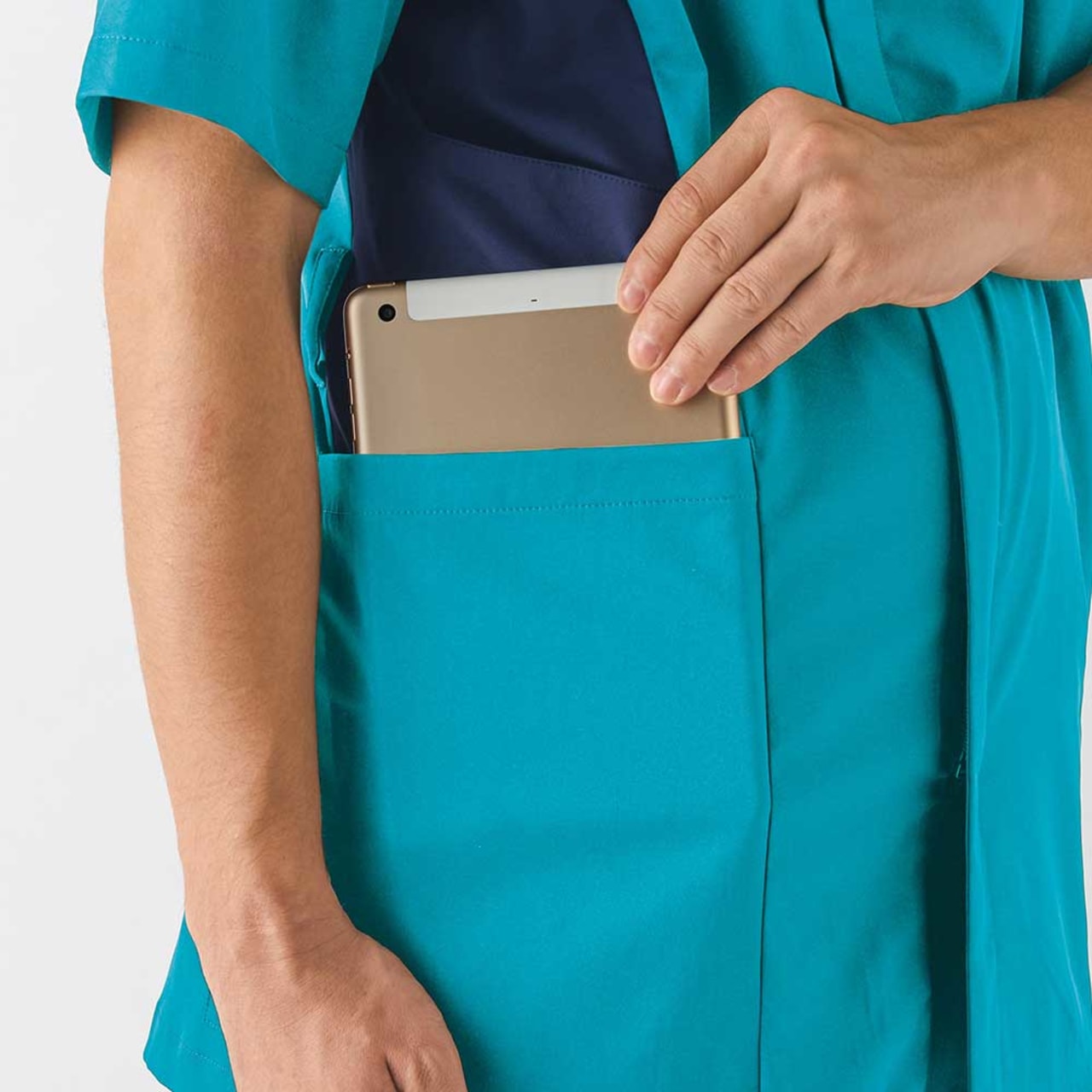 身体の動きを徹底的に追求したミズノ独自の裁断方法「DynamotionFit」を採用。ウエアの引きつれや圧迫感が軽減されています。また、SEK(赤)認証の制菌加工が施されているので、繊維上の細菌の増殖を抑制。工業洗濯対応の高い耐久性とストレッチ性能を併せ持ち、医療・福祉の現場に適したウエアです。