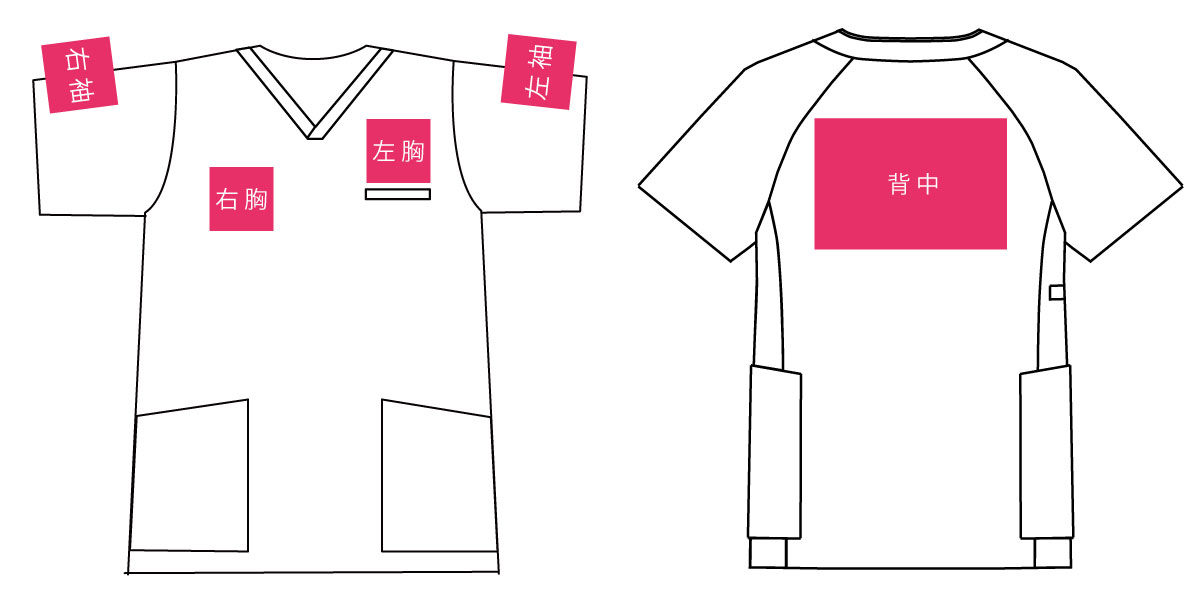 ピンク部分は、刺しゅう、プリントどちらもOK