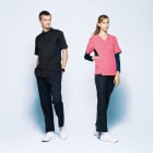 身体の動きを徹底的に追求したミズノ独自の裁断方法「DynamotionFit」を採用。ウエアの引きつれや圧迫感が軽減されています。また、SEK(赤)認証の制菌加工が施されているので、繊維上の細菌の増殖を抑制。工業洗濯対応の高い耐久性とストレッチ性能を併せ持ち、医療・福祉の現場に適したウエアです。