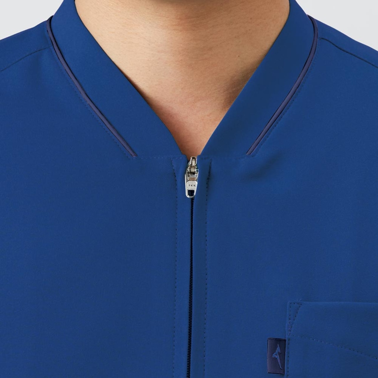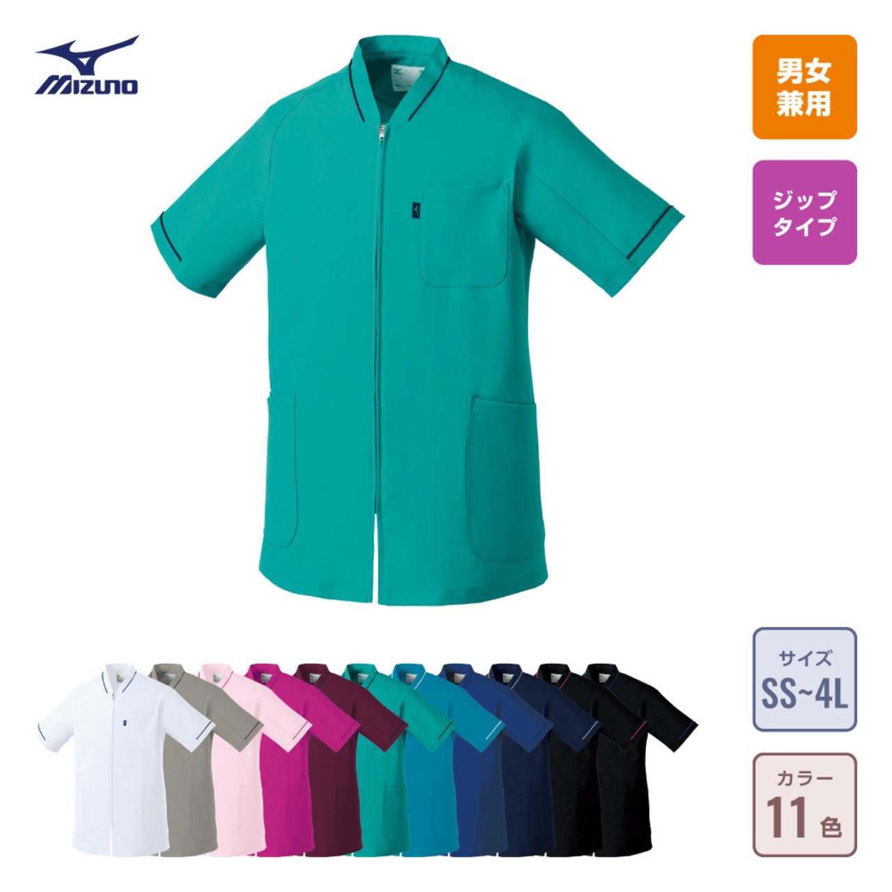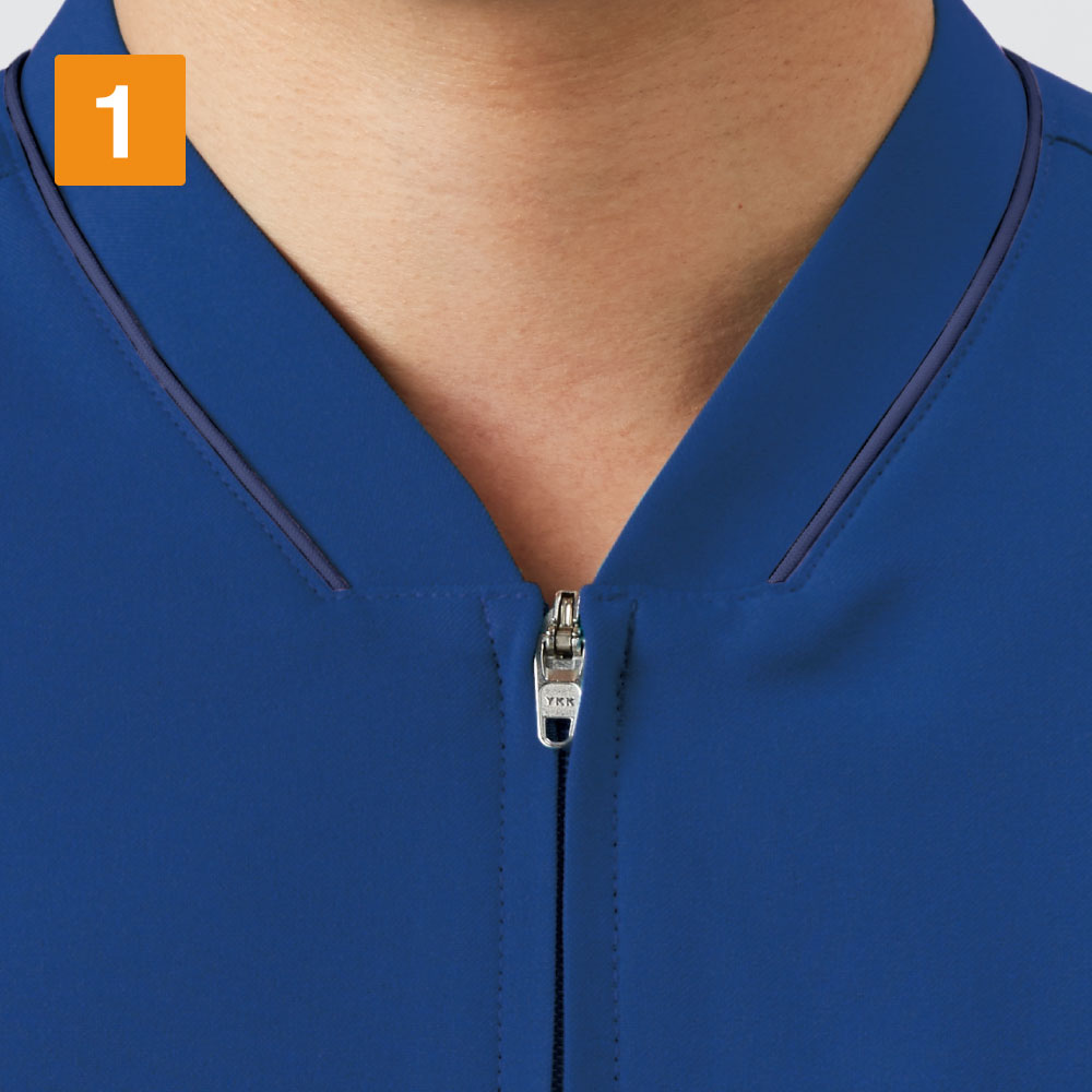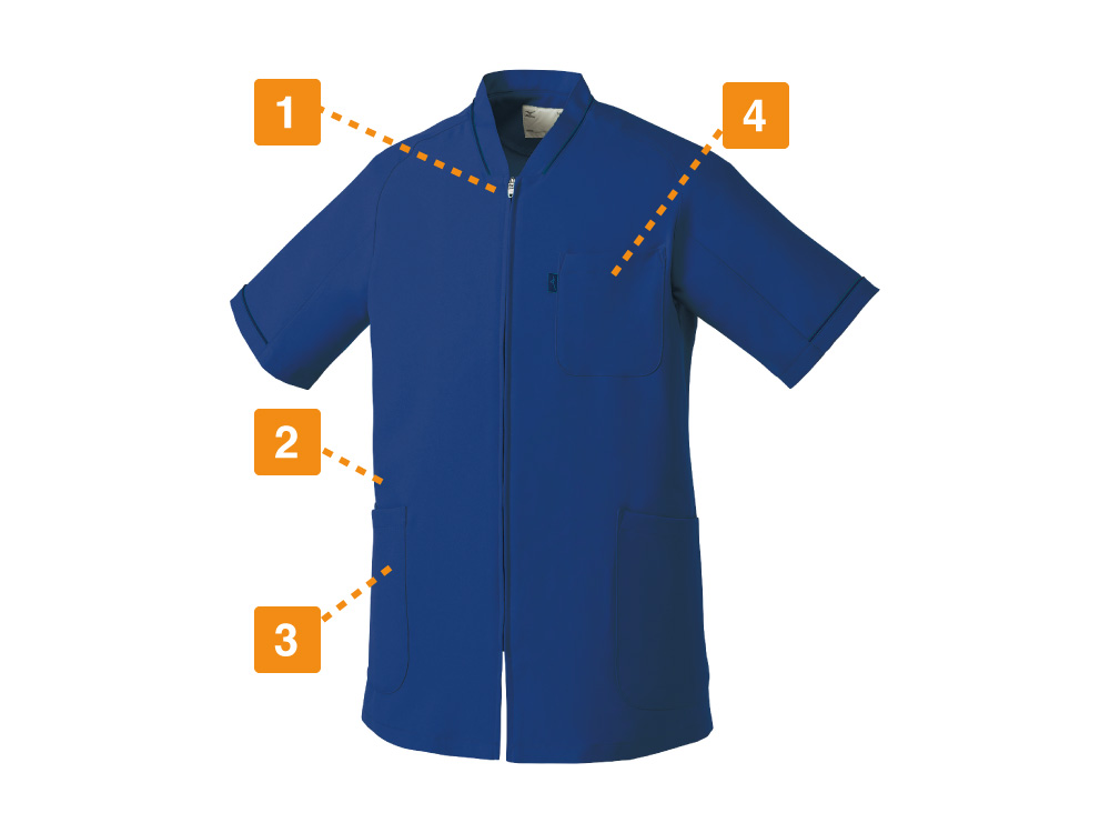 前であくファスナータイプのスクラブ。男女兼用アイテムです。シンプルでスタンダードなデザインですが、洗練された印象を与えてくれます。スポーツメーカーで有名なミズノのスクラブです。