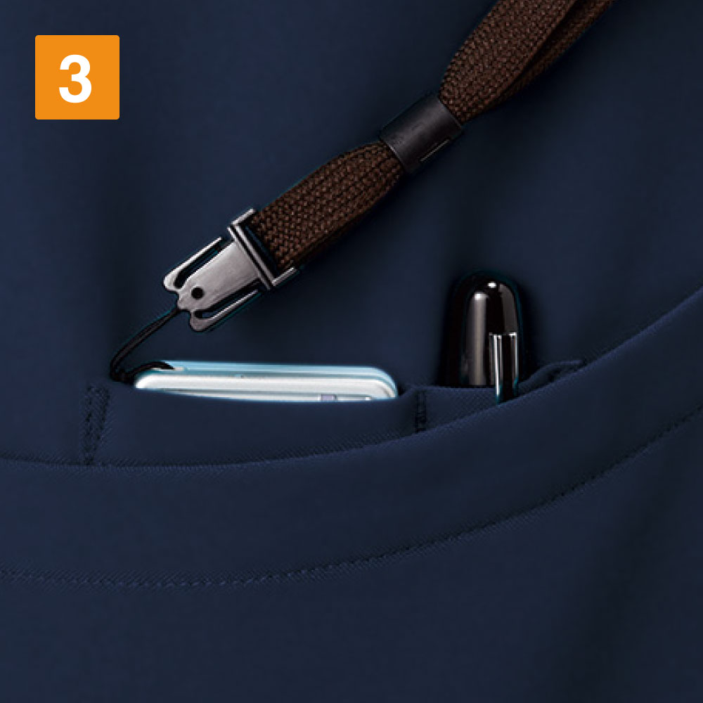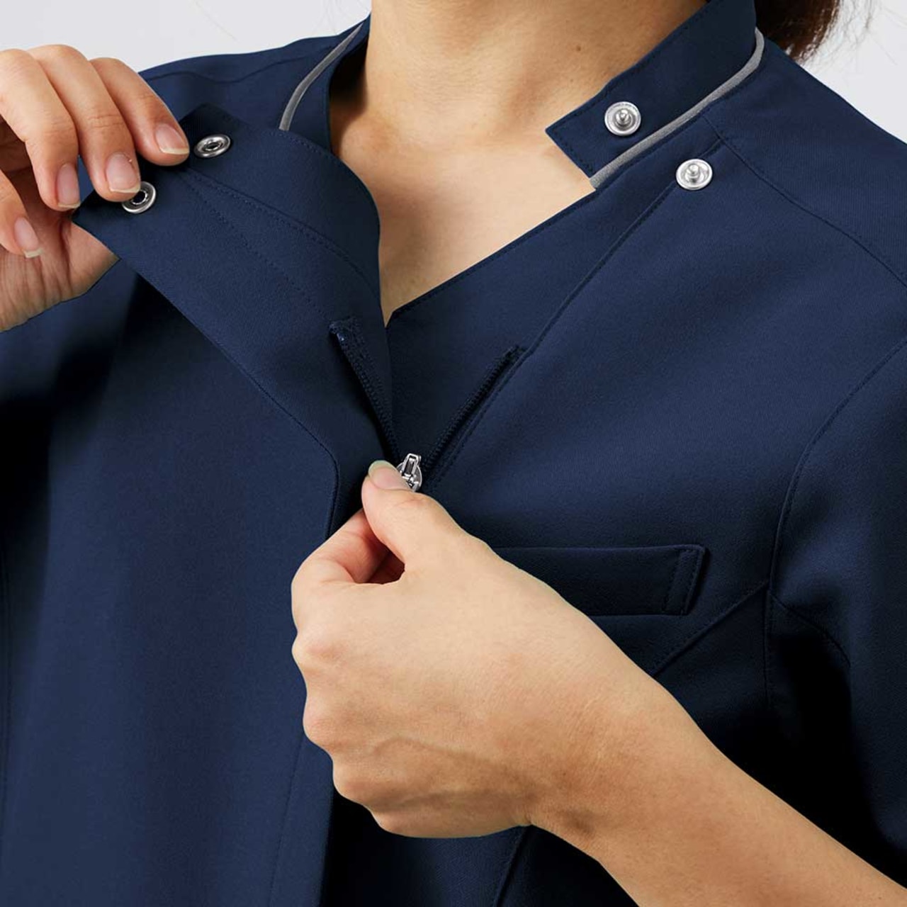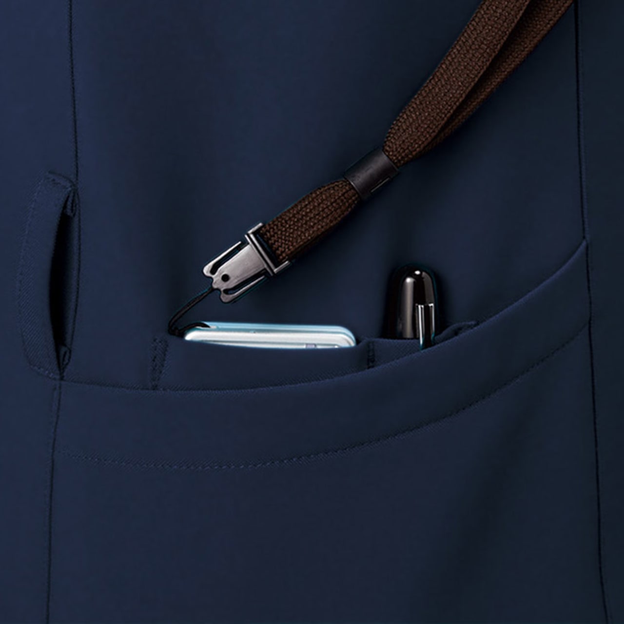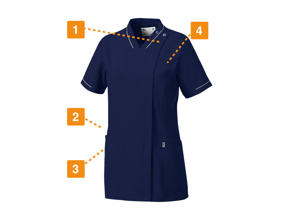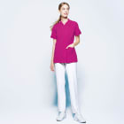 多機能なだけではなく、襟元のパイピングがおしゃれな「ミズノ」のレディース用スクラブです。身体の動きを徹底的に追求したミズノ独自の裁断方法「DynamotionFit」を採用。ウエアの引きつれや圧迫感が軽減されています。また、通気性が良く、サラッとした肌触りと軽い着心地。工業洗濯対応で、劣化しにくい高耐久性も嬉しいウエアです。