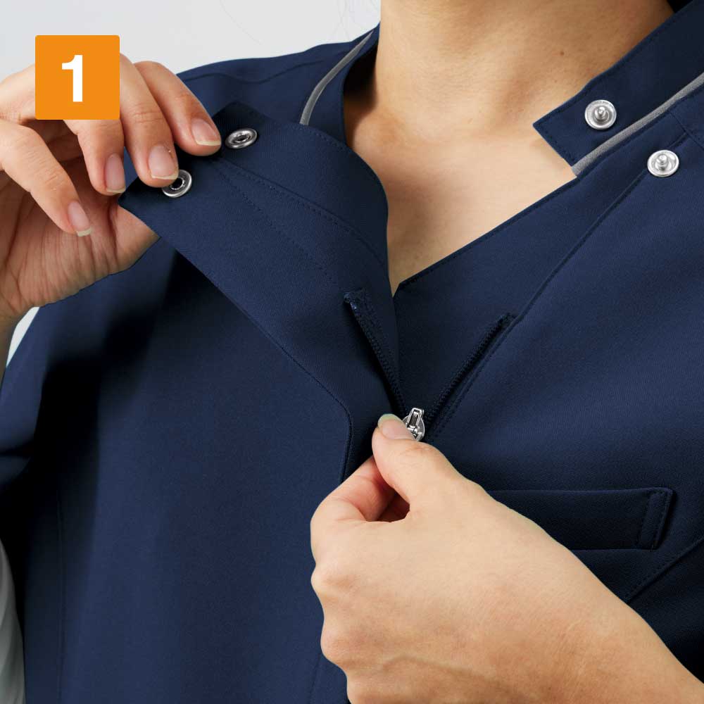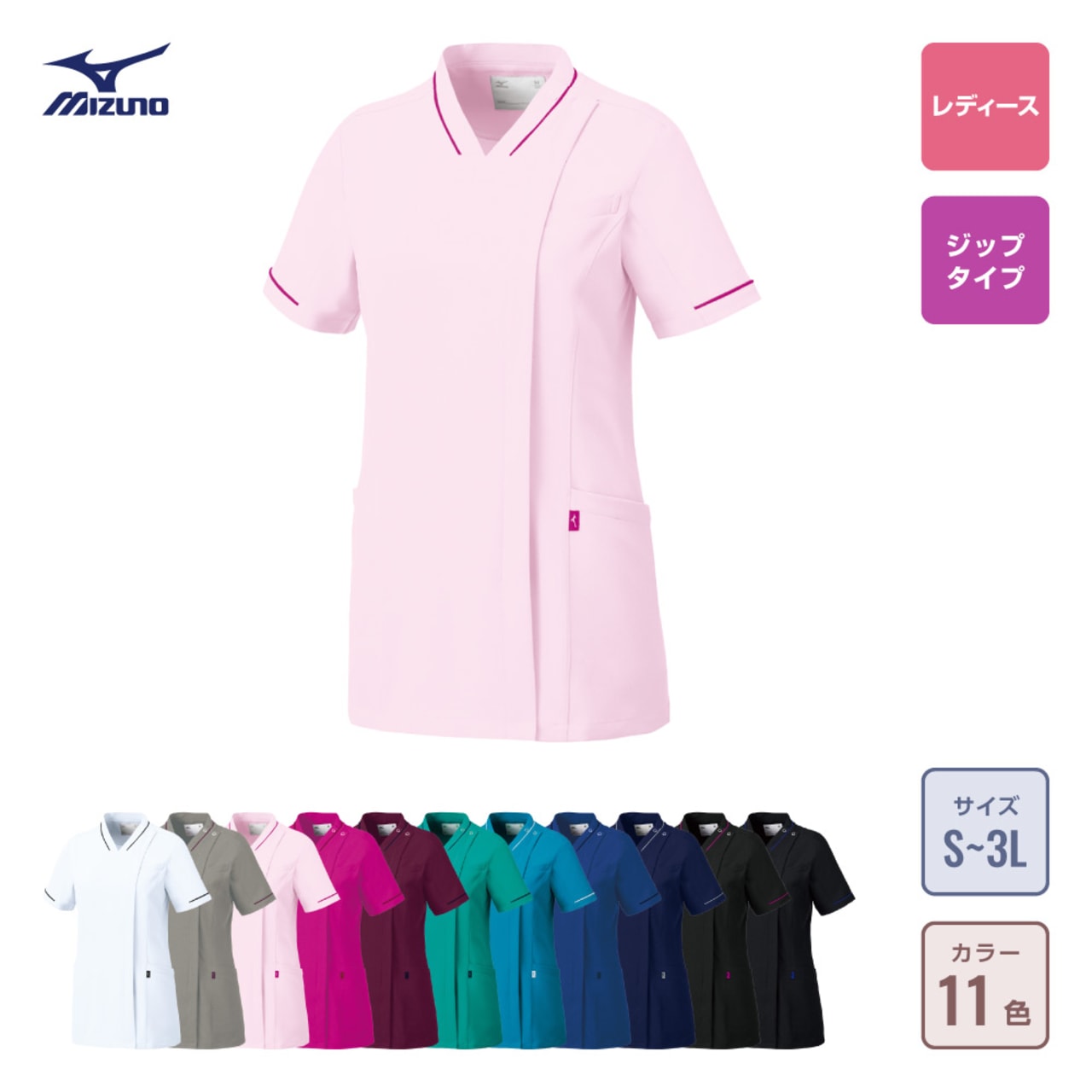 女性専用のジップスクラブ。スポーツメーカーでお馴染みのミズノさんのスクラブです。シンプルなデザインですが、スポーティーな印象を与えてくれます。可愛いカラー展開にも注目のスクラブです。