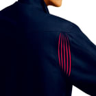 このジャンパーは、アシンメトリーデザインやツインファスナーを取り入れることでハード感のあるデザインに仕上がっています。意匠登録済みの伸縮性に優れているアコーディオニットを背中の肩部分に使用しているため、体を動かしやすいつくりになっています。両脇と両肩には、消臭&抗菌テープを採用しているため、汗をかいてもニオイが気になりにくいのも特徴です。機能性だけではなく、背当てプリントや右胸ポケットのファスナーについているロゴ入りスラダー、左胸ポケットのワンポイントなどデザインにもこだわっています。機能性とデザイン性の両方を求めたい人におすすめのジャンパーです。