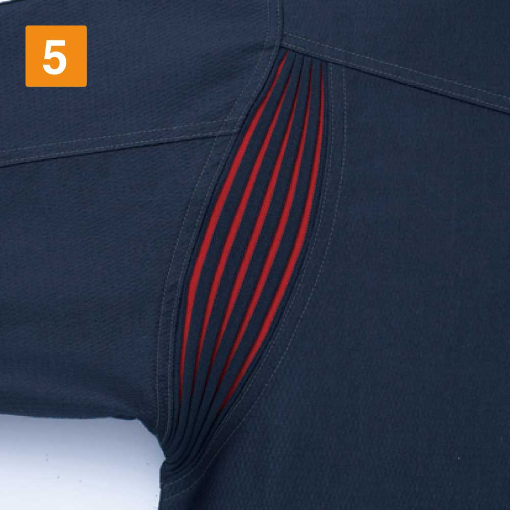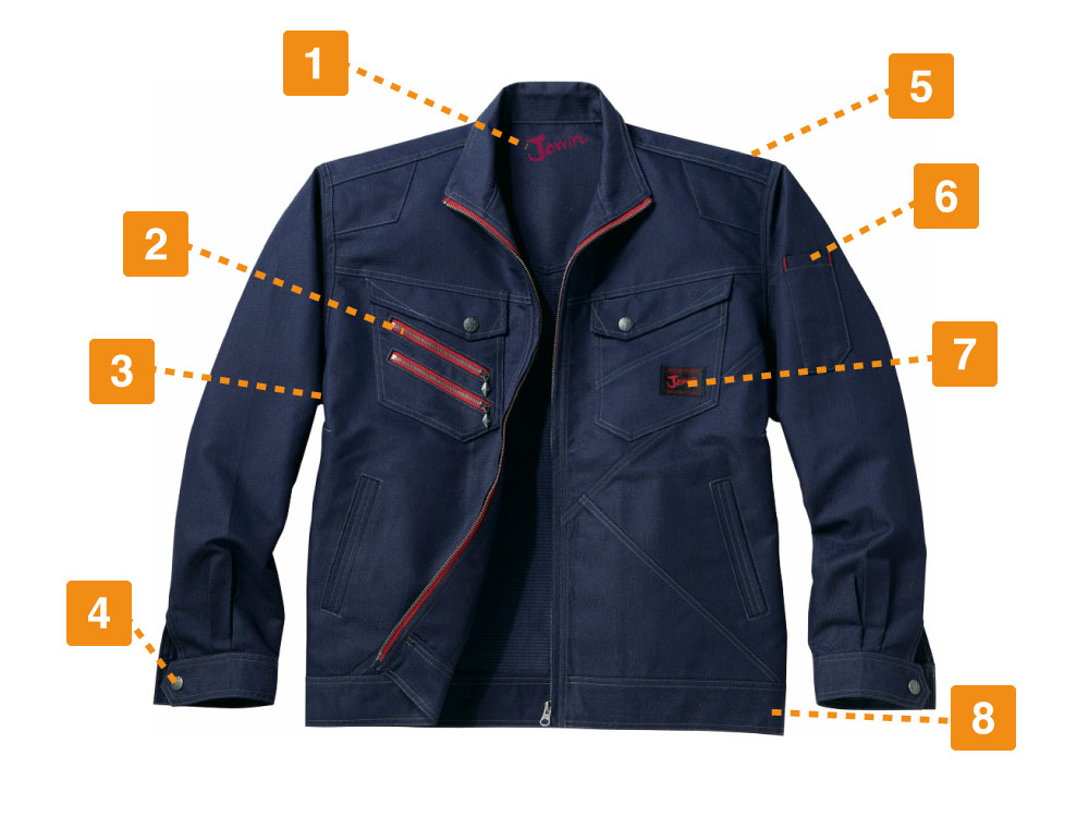 動きやすさは作業服選びで重要なポイントになります。作業服として販売されているアイテムは基本的に動きやすさを追求しているものが多いですが、このジャンパーは意匠登録済みのアコーディオニットを採用しています。そのため、伸縮性の高さが大きな強みとなっているのです。アシンメトリーデザインやツインファスナーの採用により、機能性だけではなくデザイン性にも優れた商品となっています。